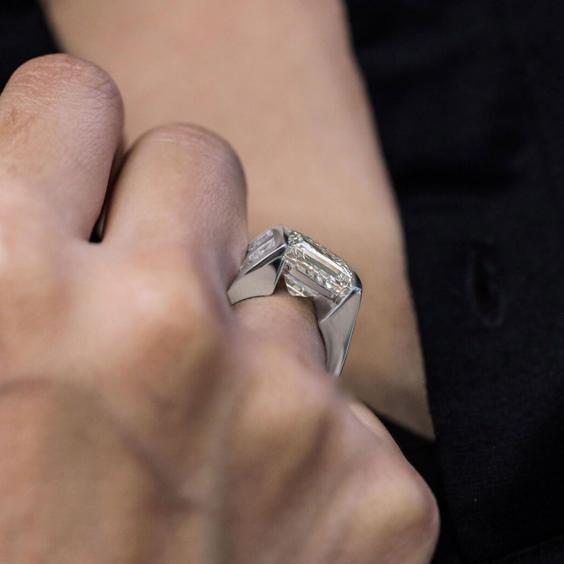 Jzora handmade 7ct asscher cut iced out men's engagement wedding ring
