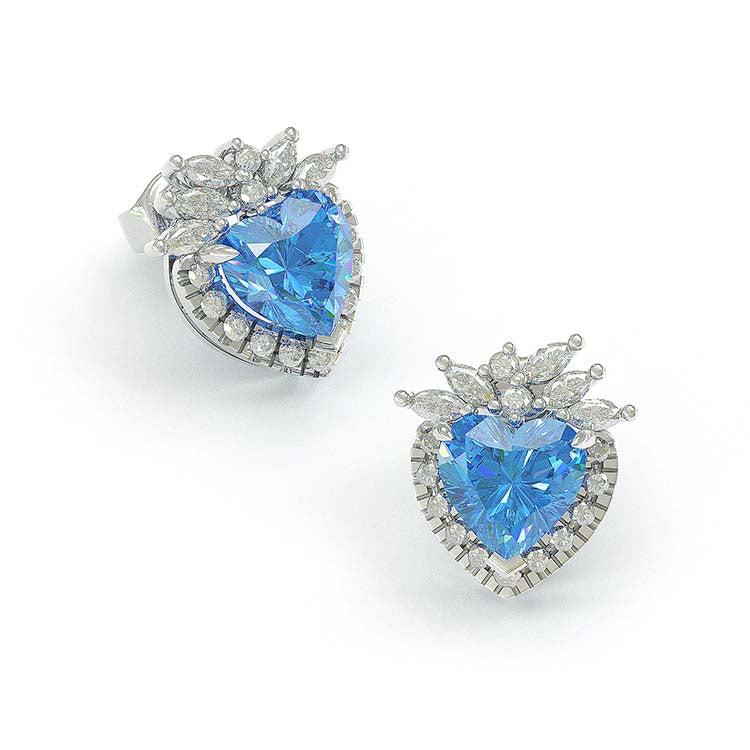 Jzora handmade aqua blue 1ct heart cut classic sterling silver earrings