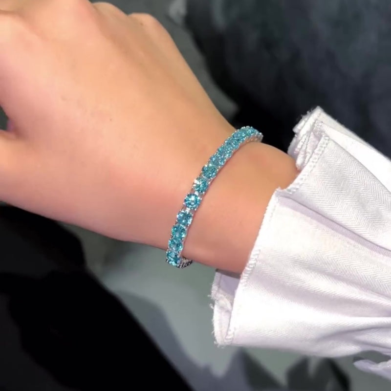 Jzora handmade aqua blue round cut chic tennis sterling silver bracelet
