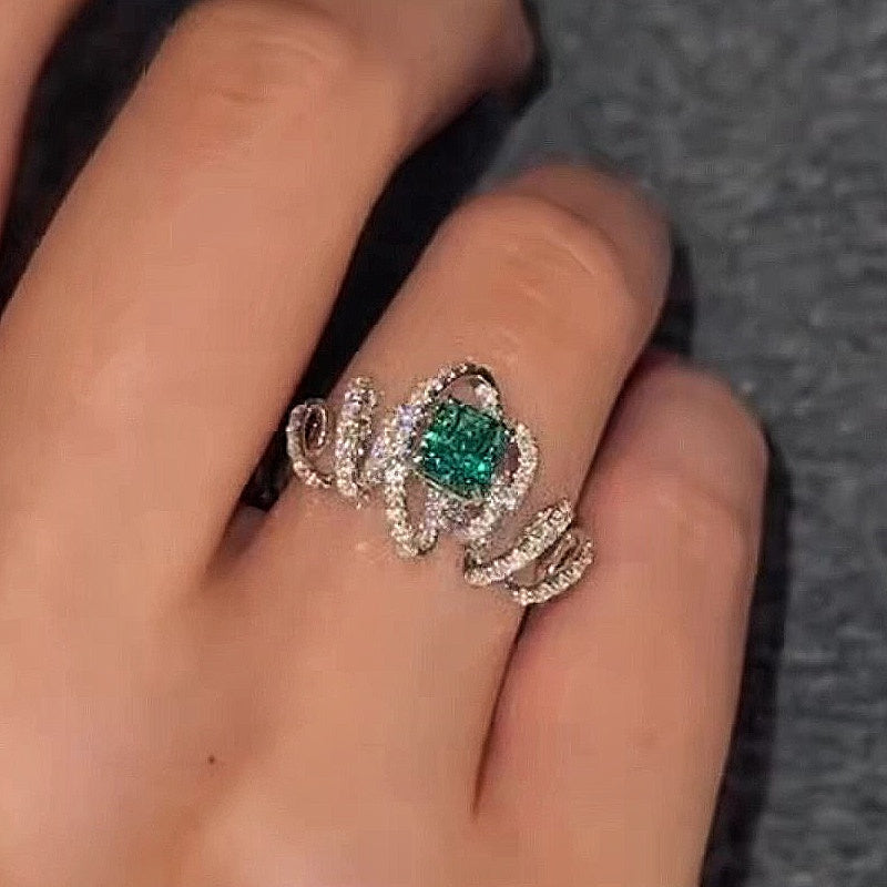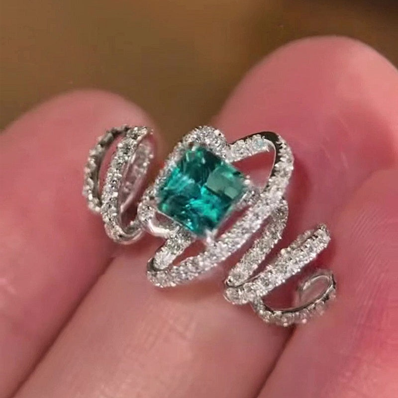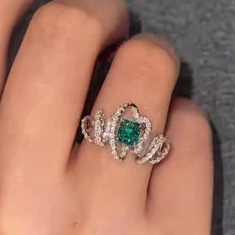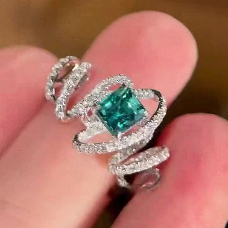 Jzora handmade artistic spiral radiant swirl halo sterling silver ring
