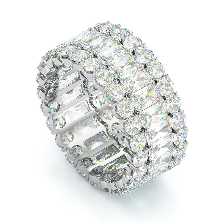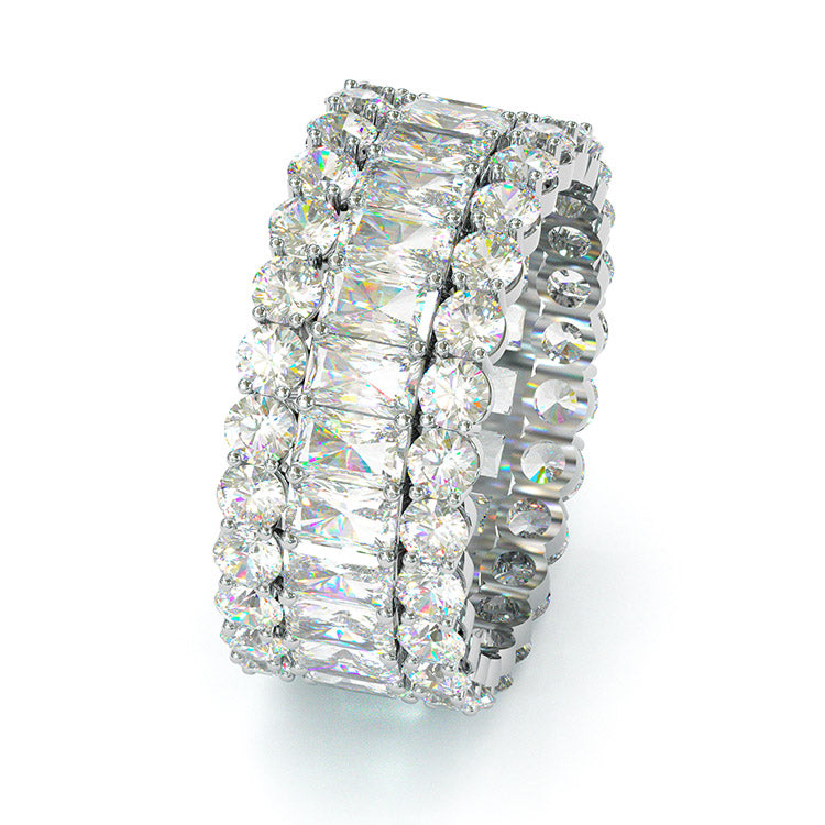 Jzora handmade baguette cut classic style sterling silver eternity wedding ring women's band