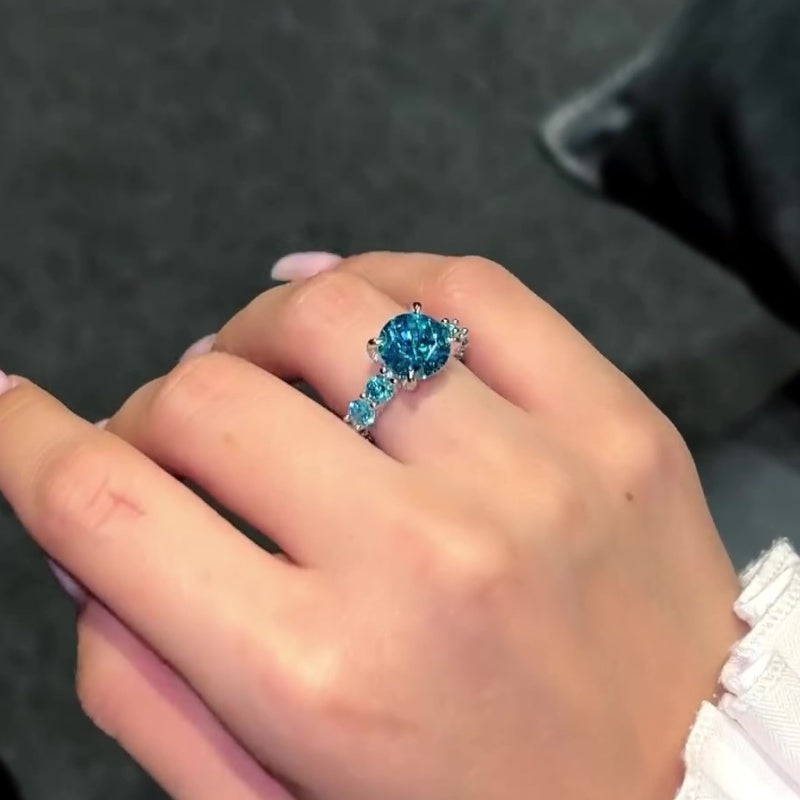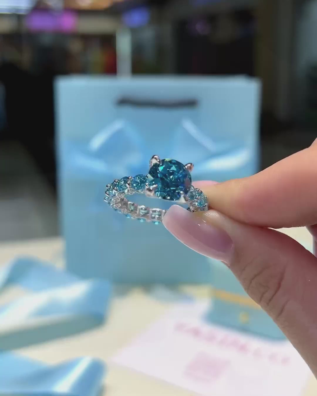 Jzora handmade aqua blue round cut fashion sterling silver engagement ring