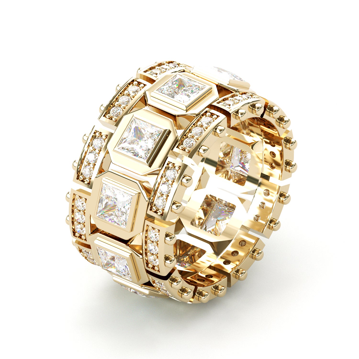 Jzora handmade bold square-link princess stone full-iced men’s band ring