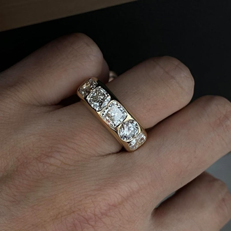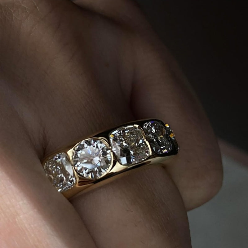 Jzora handmade brilliant round & cushion cut gold men's band ring