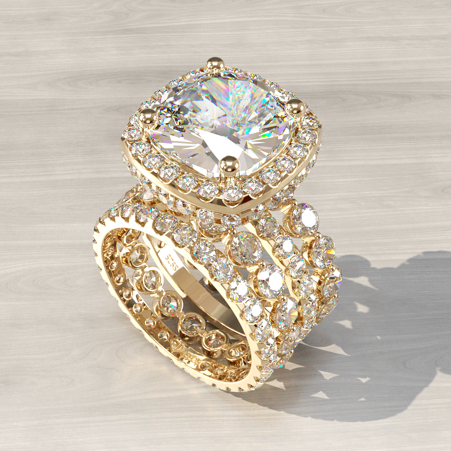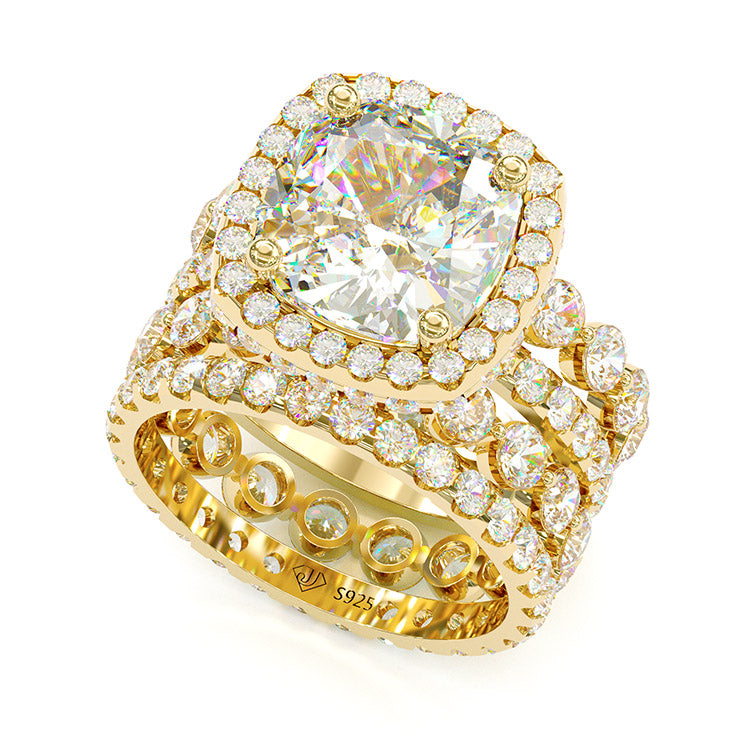 Jzora handmade classic cushion cut halo 4 pcs vintage wedding ring bridal set