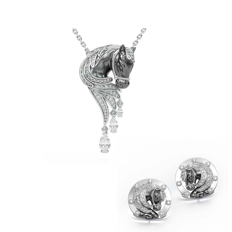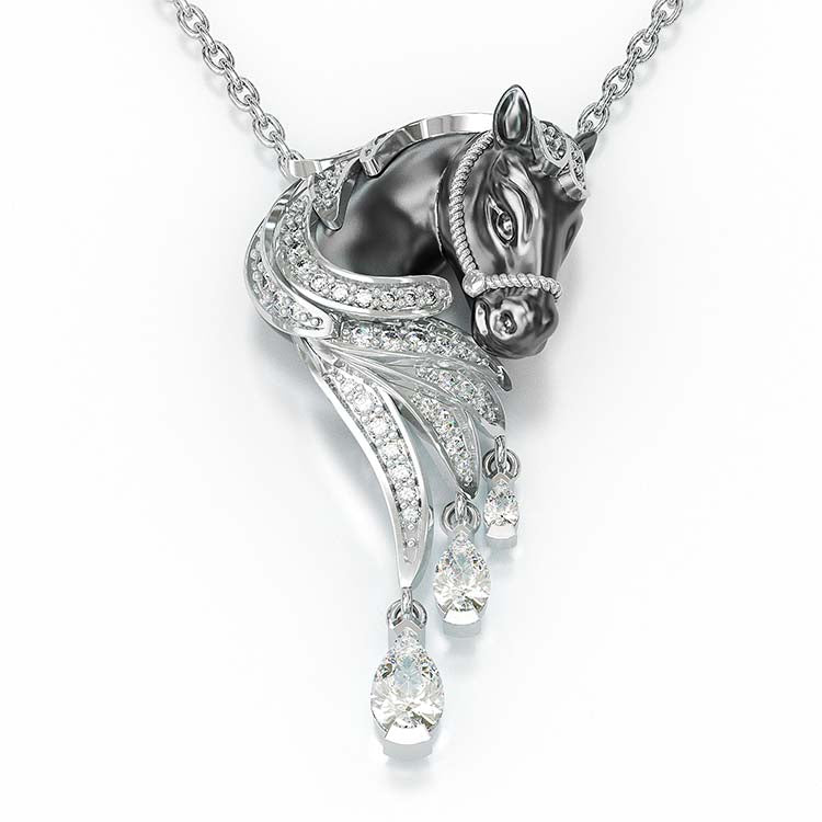 Jzora Handmade Classic Horse Necklace & Earrings Jewelry Set