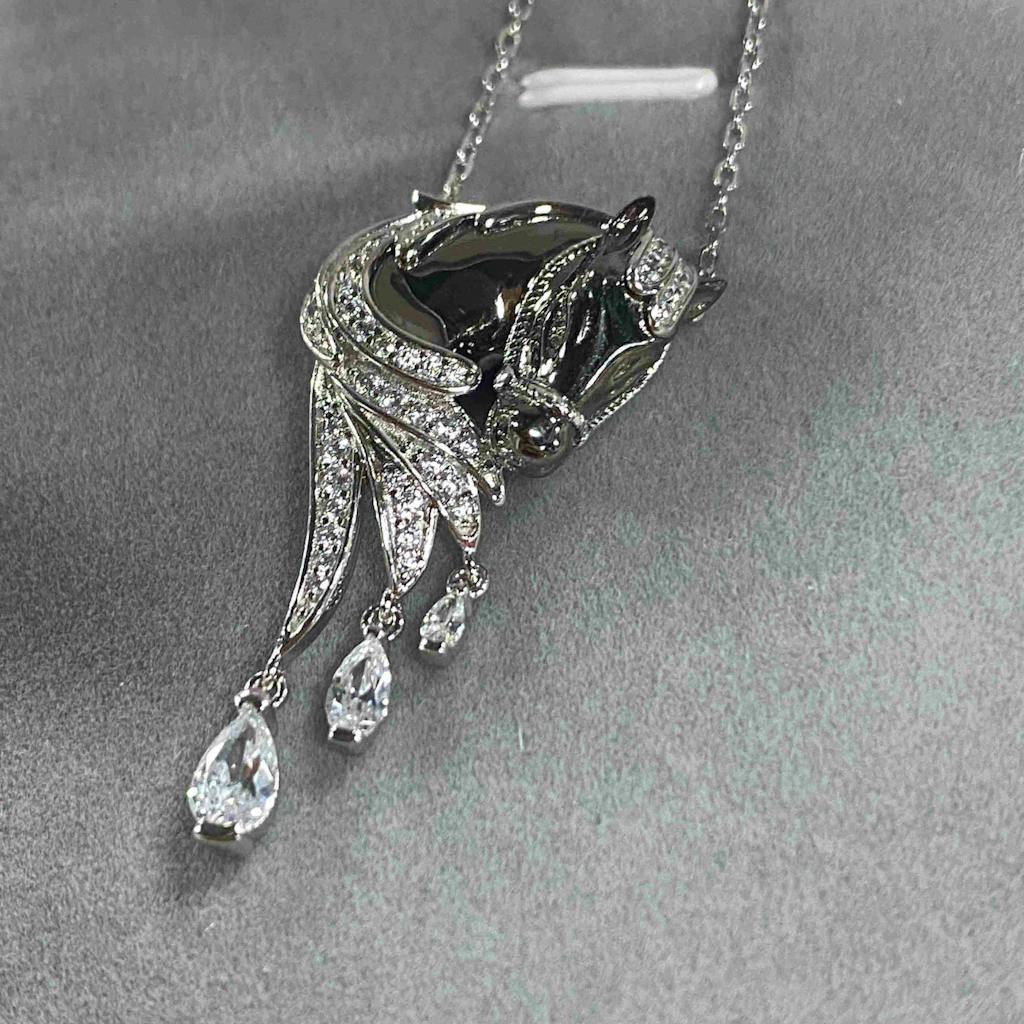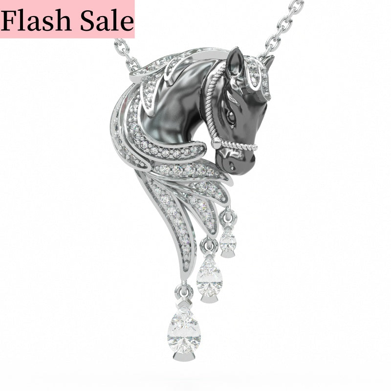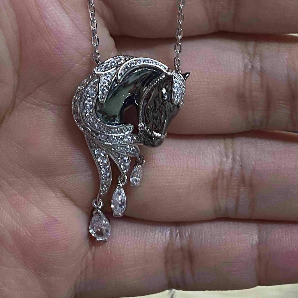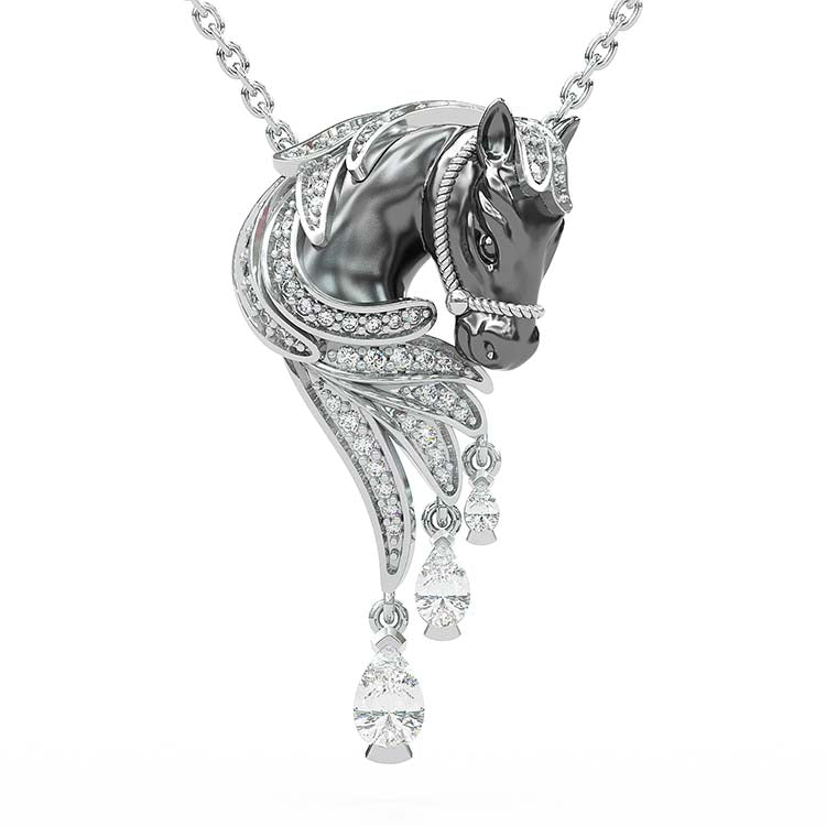 Jzora Handmade Classic Horse Sterling Silver Diamond Necklace