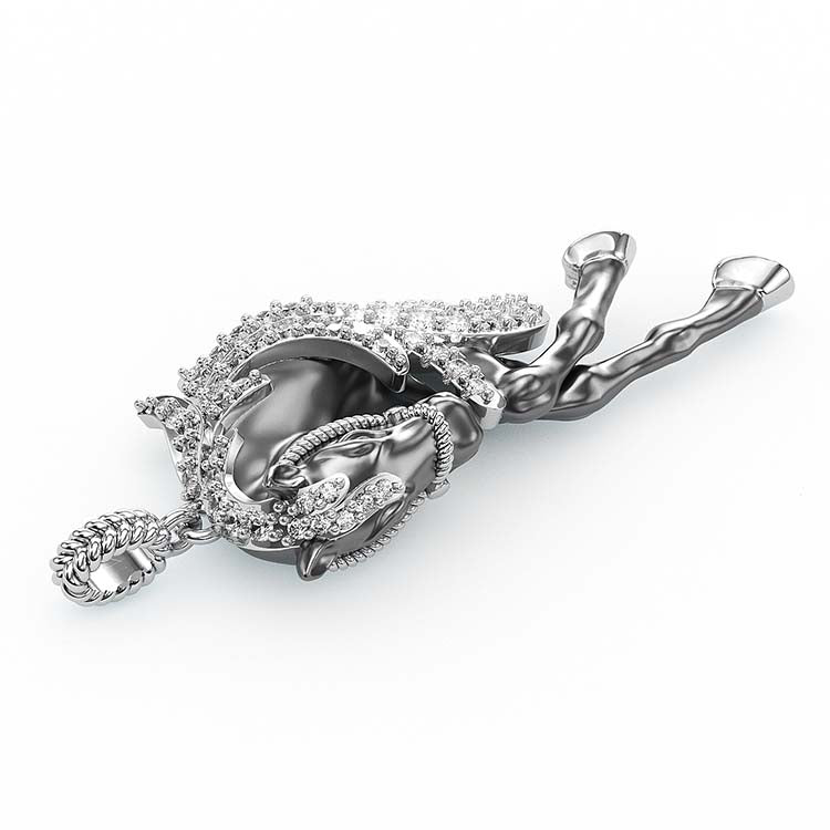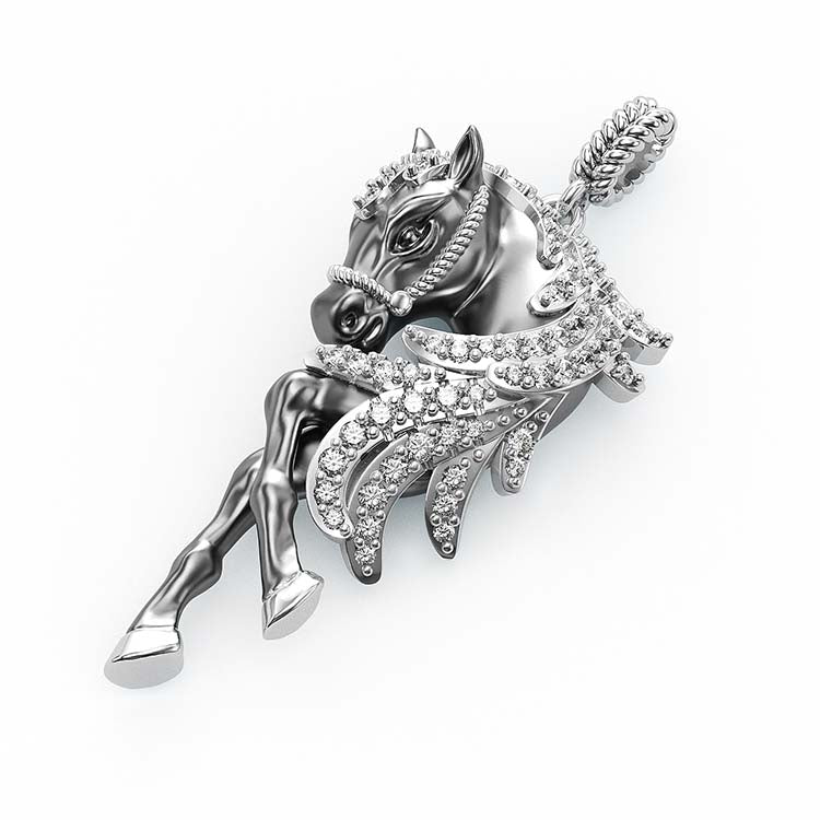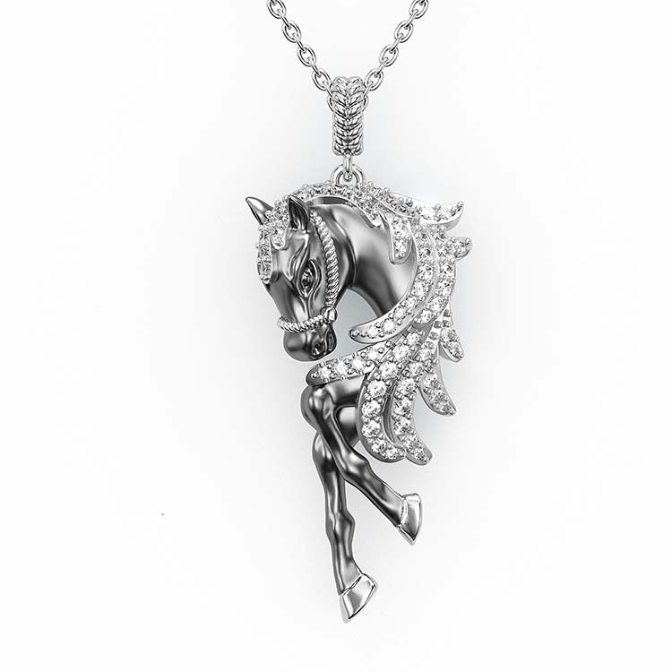 Jzora Handmade Classic Horse Sterling Silver Diamond Necklace
