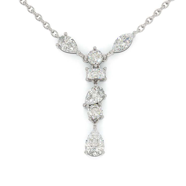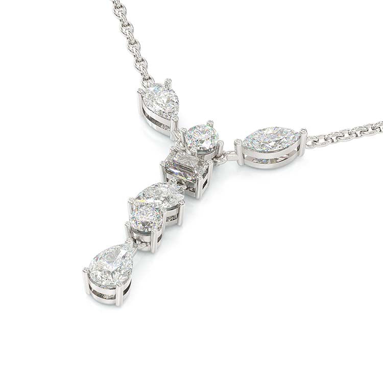 Jzora Handmade Classic Multi Shape Diamond Sterling Silver Necklace