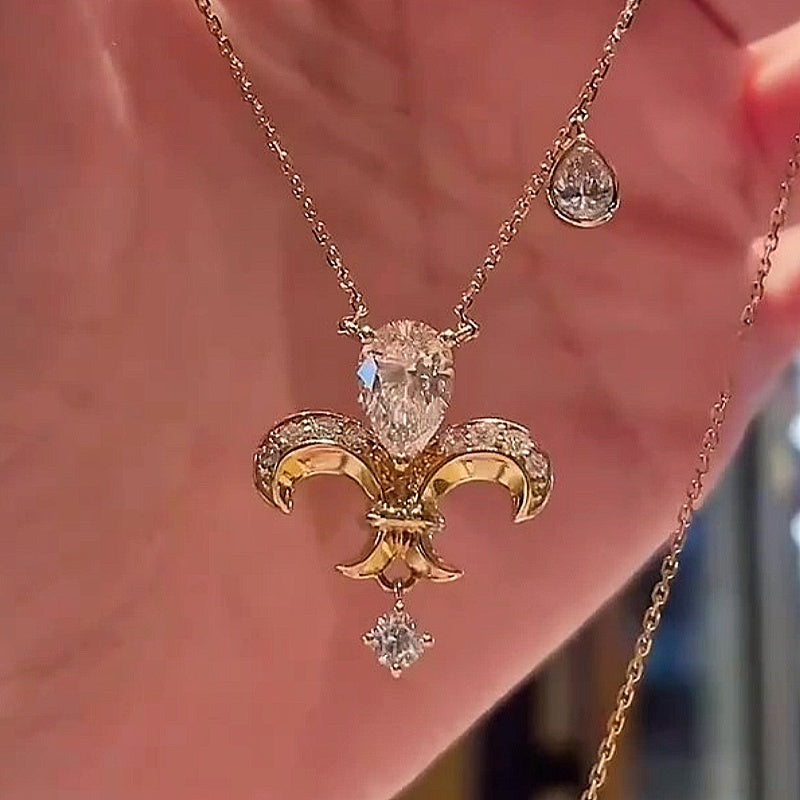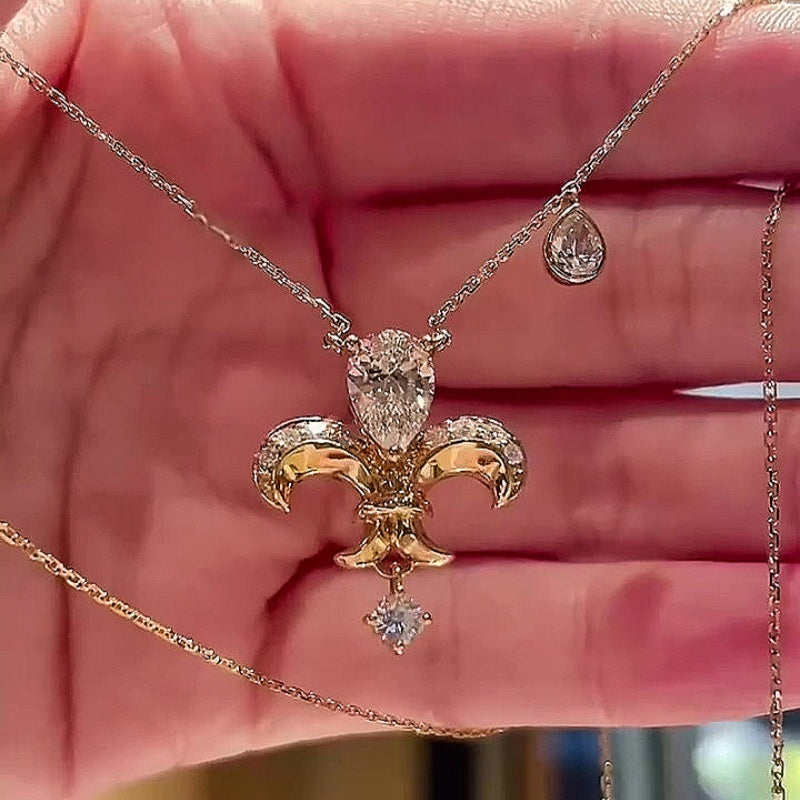 Jzora handmade classic royal iris pear drop iced sterling silver necklace