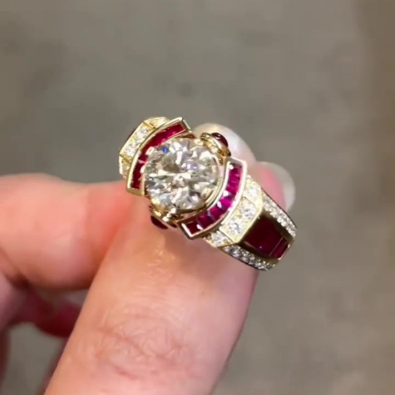 Princess-Cut Ruby – Features a stunning princess-cut ruby, known for its sharp, clean edges and brilliance.