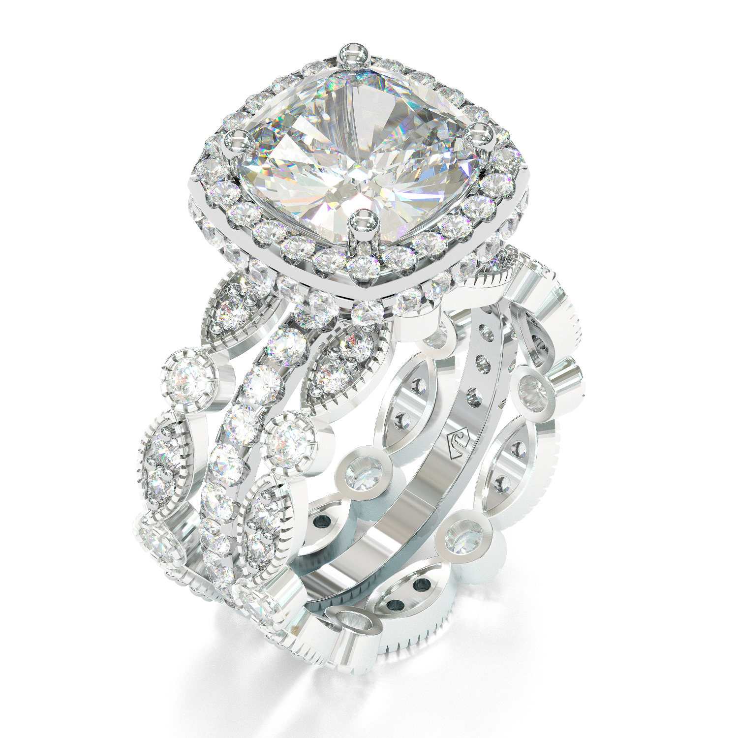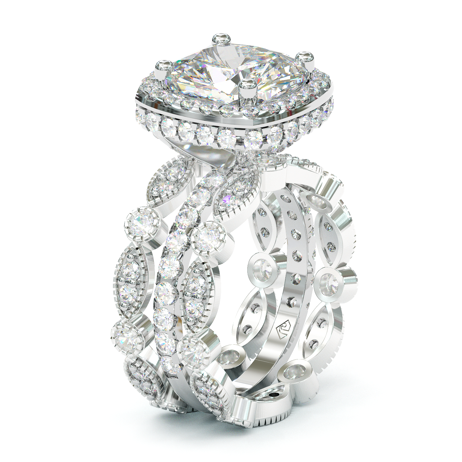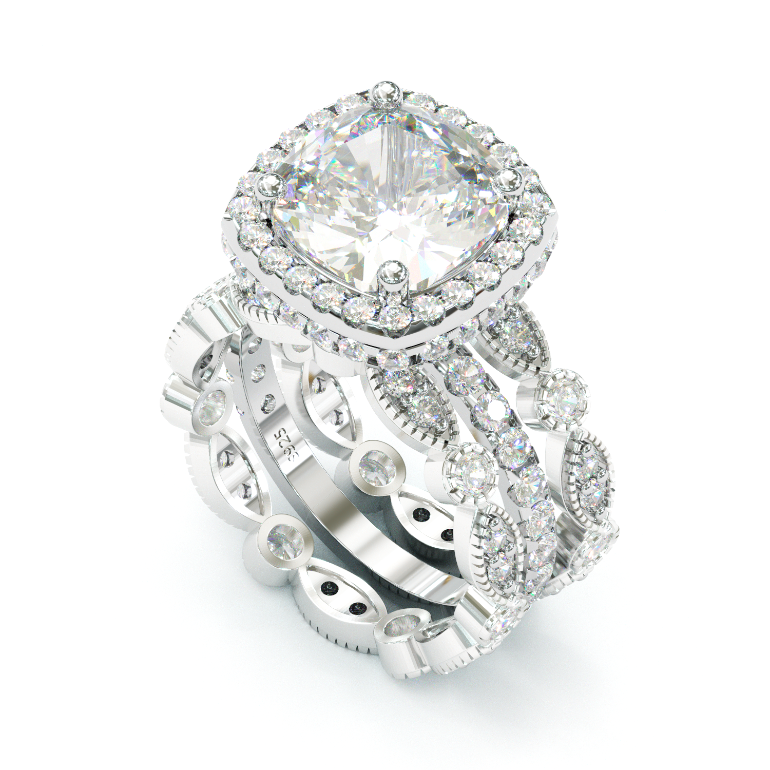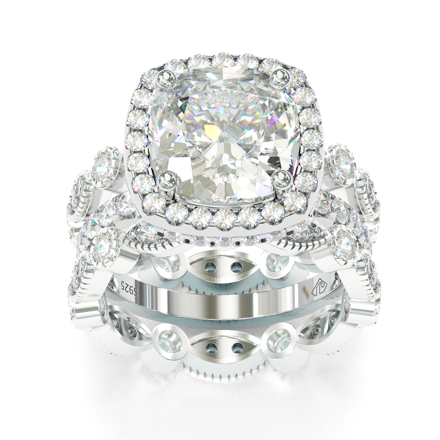 Jzora handmade created diamond cushion cut sterling silver bridal set