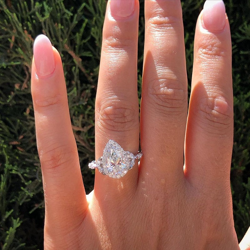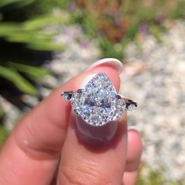 Jzora handmade created diamond pear cut 2 pcs sterling silver wedding ring bridal set