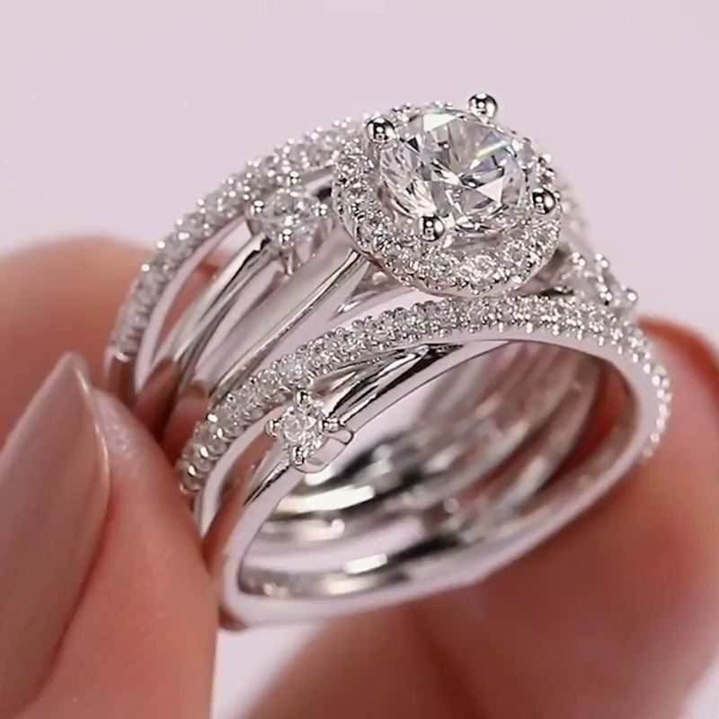 Jzora handmade created diamond round cut 2 pcs sterling silver wedding ring bridal set