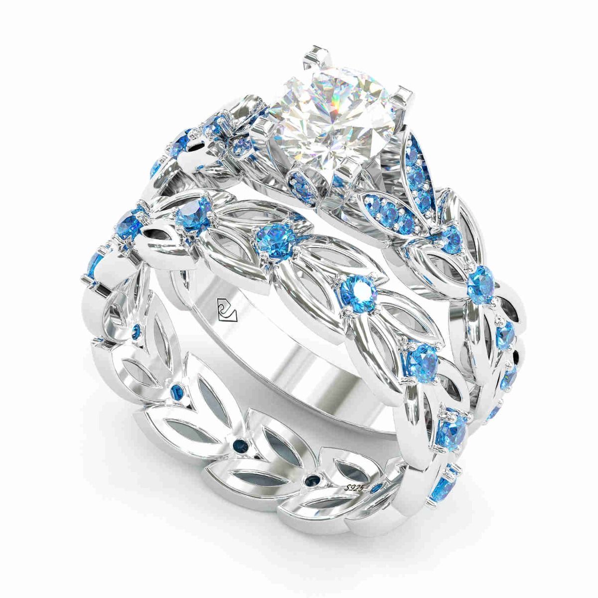 Jzora handmade created diamond round cut butterfly wedding ring bridal set
