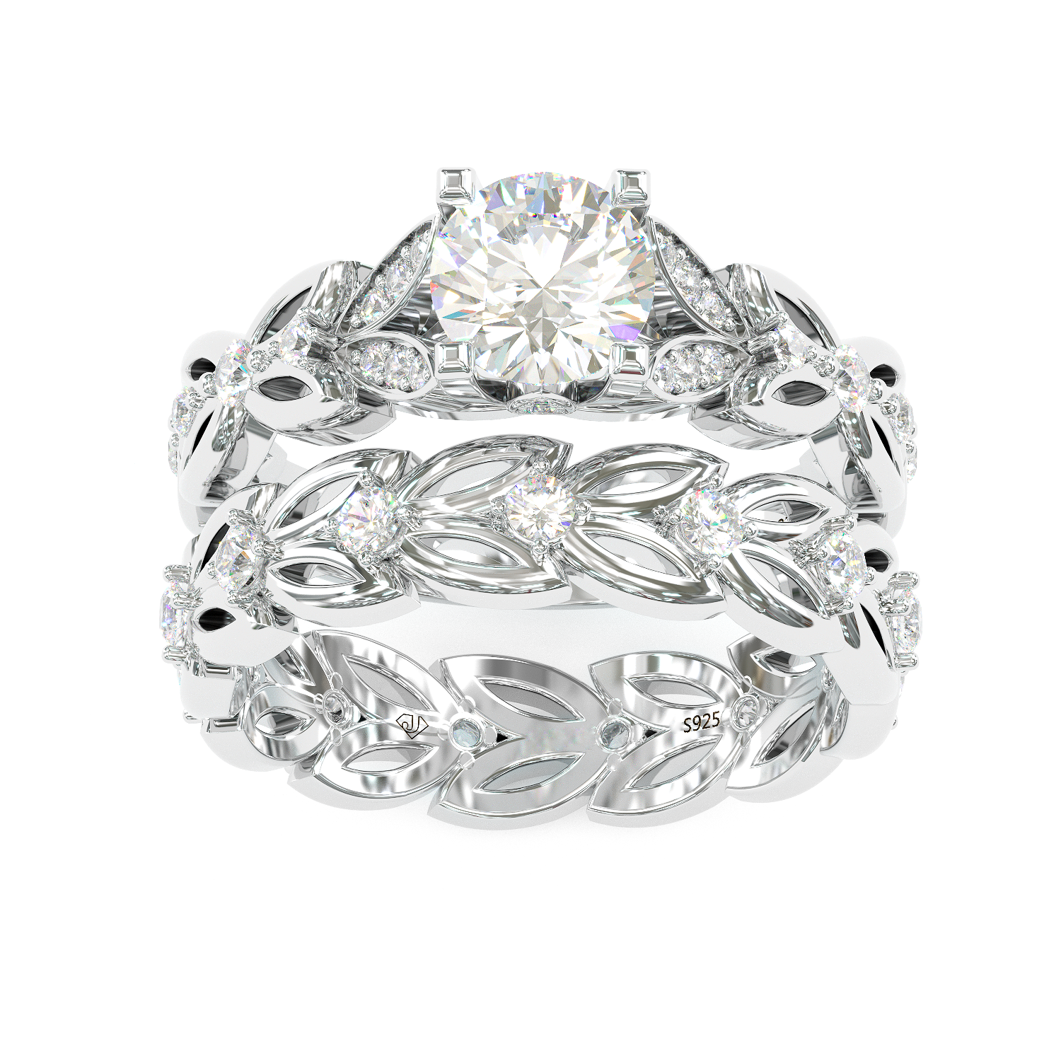 Jzora handmade round cut butterfly Sterling silver wedding ring bridal set