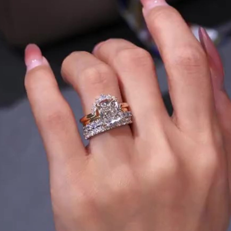 Jzora handmade crown-inspired radiant cut multi-tiered 4 pcs sterling silver ring set