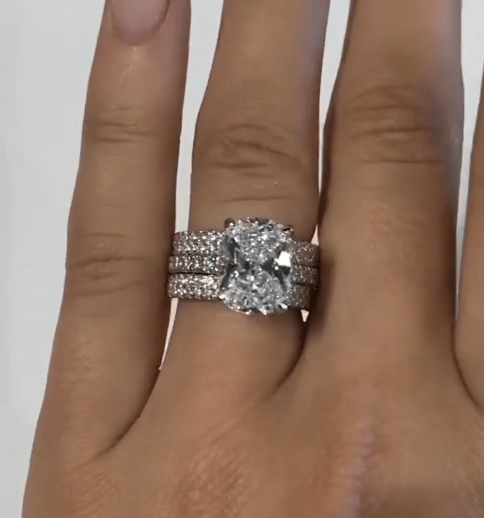 Jzora Handmade Cushion Cut 3 Pieces Vintage Sterling Silver Wedding Ring Set