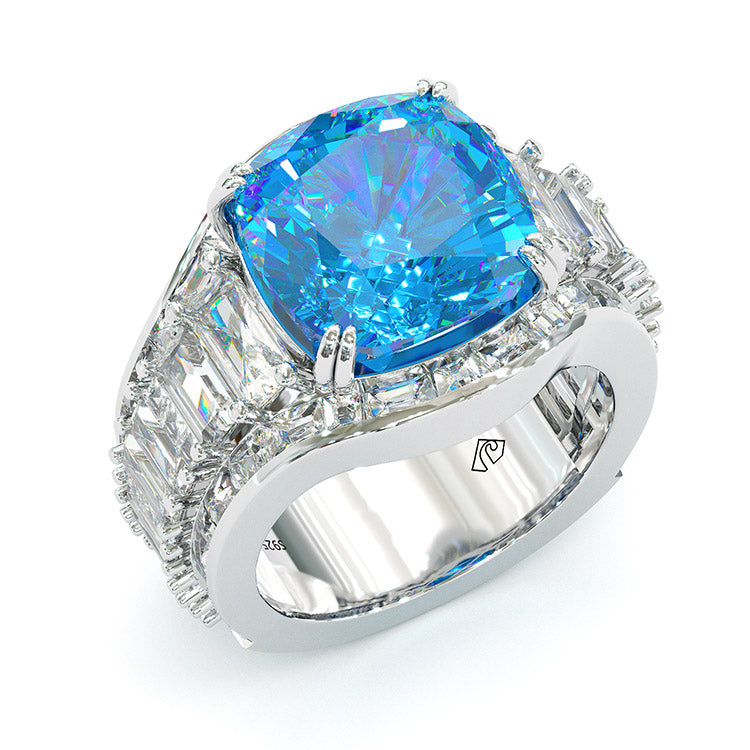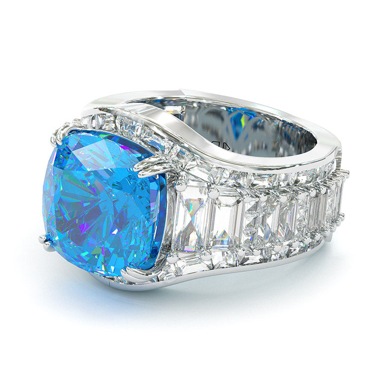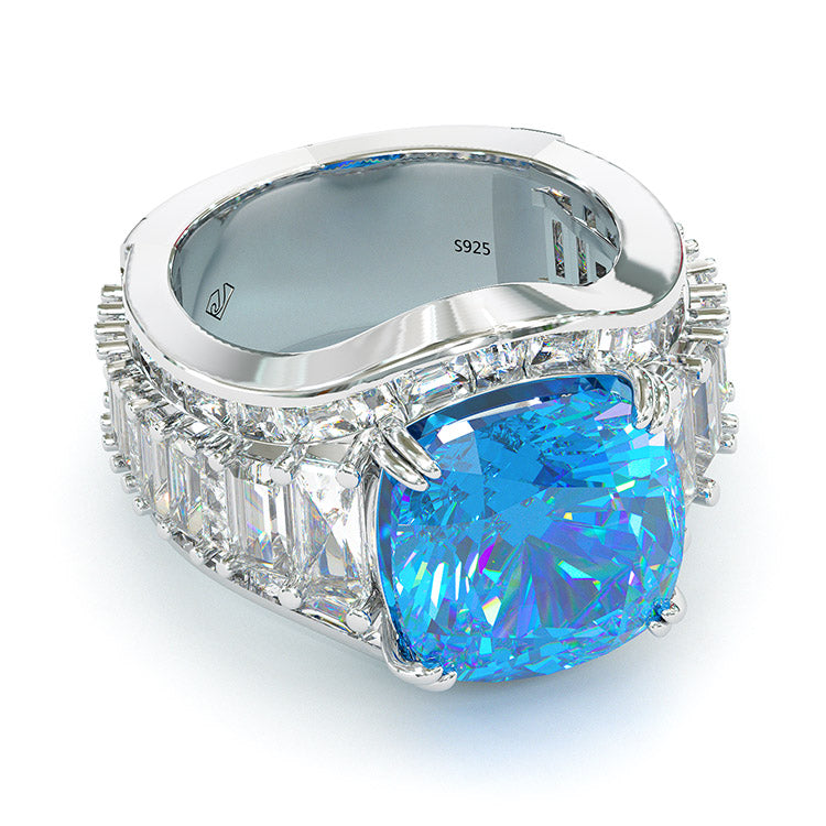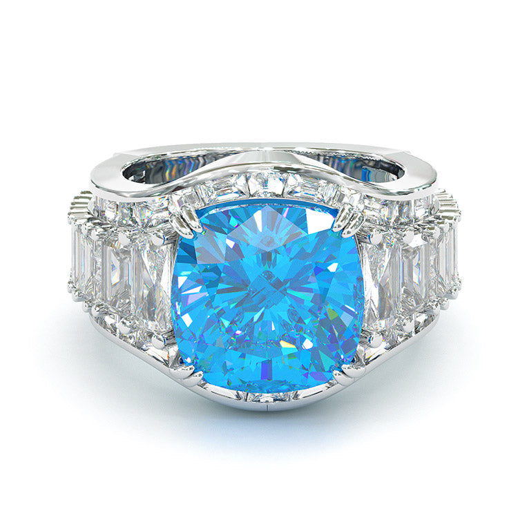 Jzora handmade cushion cut aqua blue diamond sterling silver vintage engagement ring