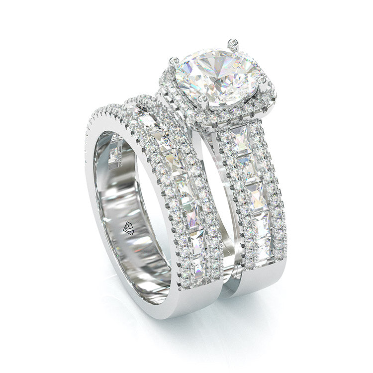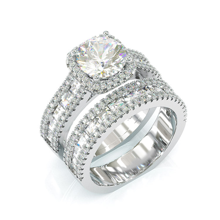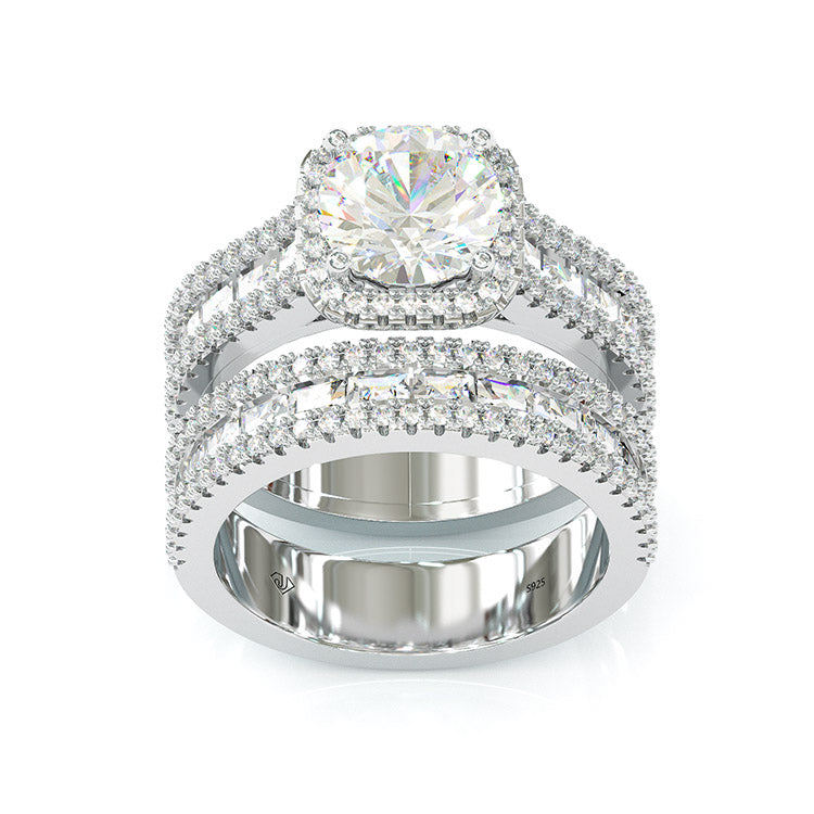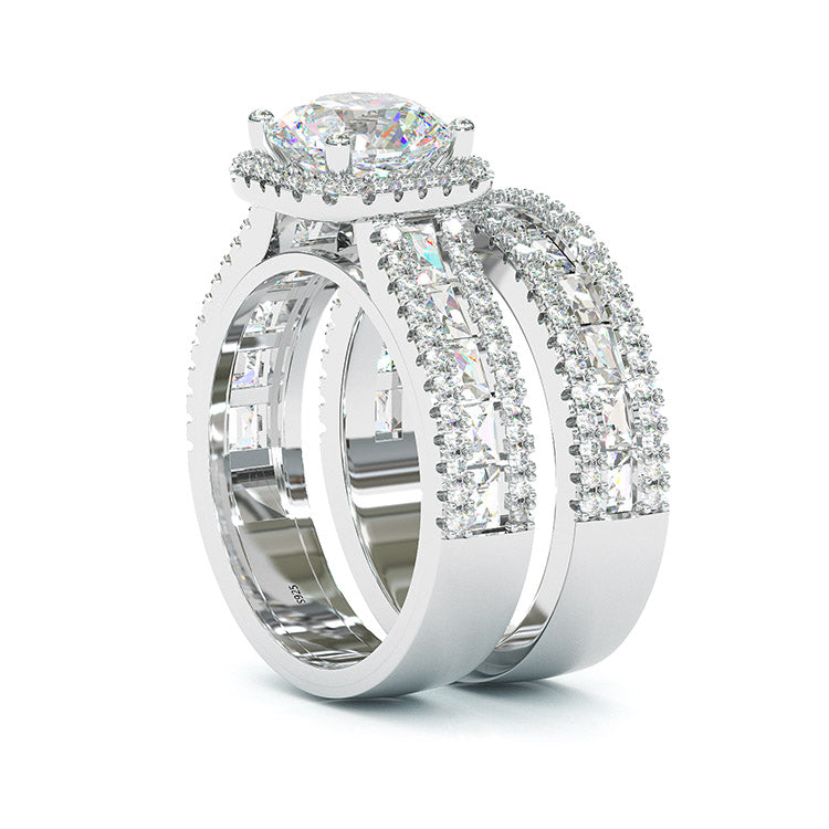 Jzora Handmade Cushion Cut Halo 2 pcs Vintage Sterling Silver Wedding Ring Bridal Set