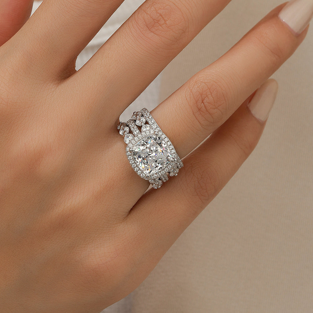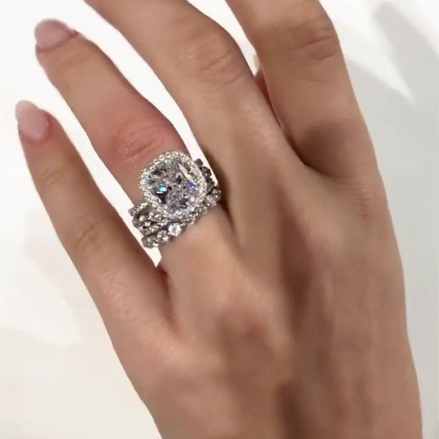 Jzora handmade cushion cut halo 4 pcs sterling silver wedding ring bridal set