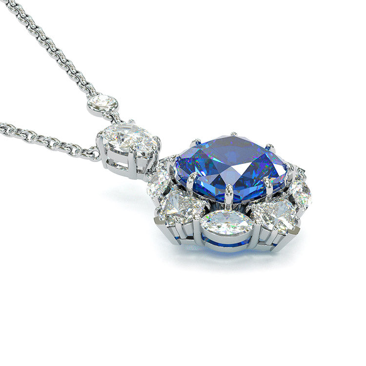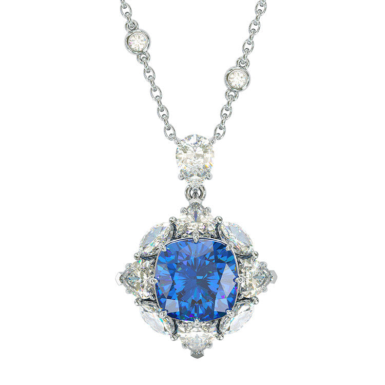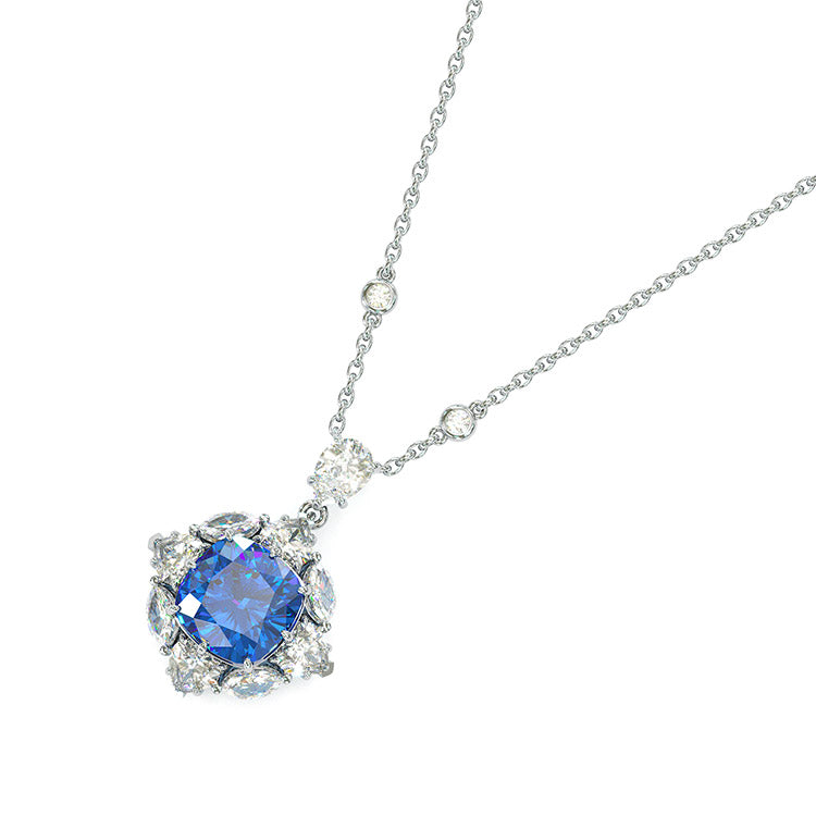 Jzora Handmade Cushion Cut Sapphire Sterling Silver Necklace