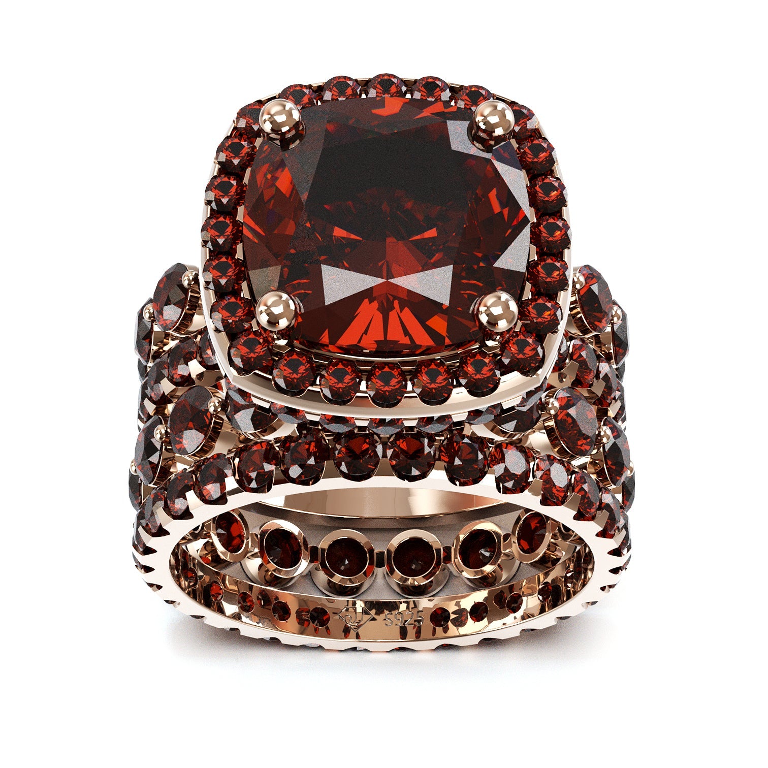 Jzora handmade cushion cut wedding ring sterling silver bridal set