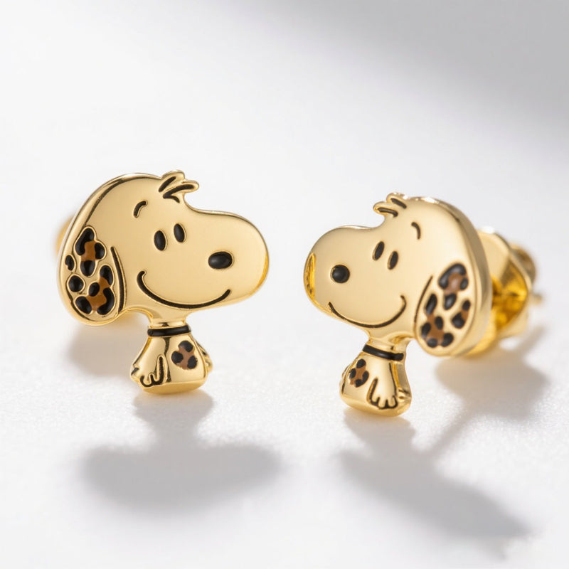 Jzora handmade dorable gold leopardprint pupsy sterling silver stud earrings