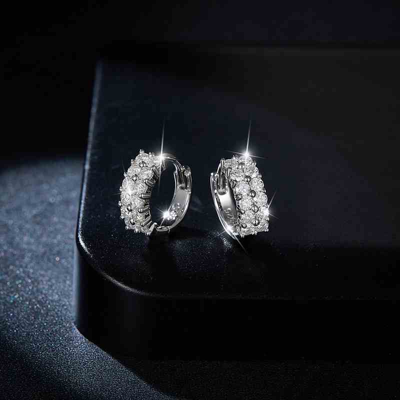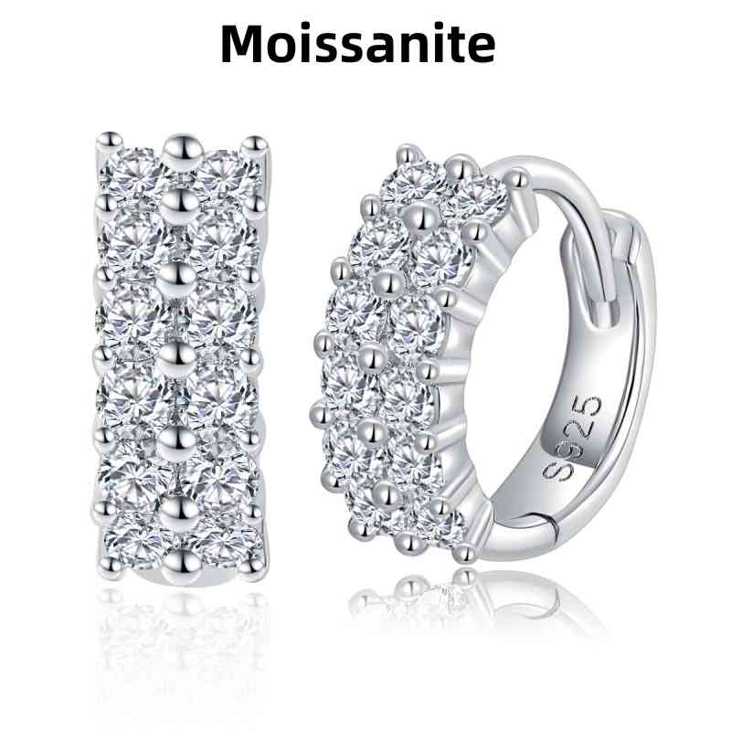 Jzora handmade double row full Moissanite diamond sterling silver earrings