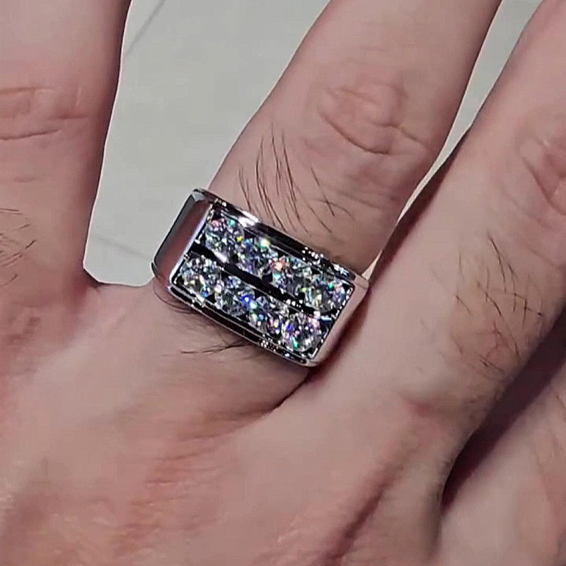Jzora handmade double row round cut glacier shine men’s ring