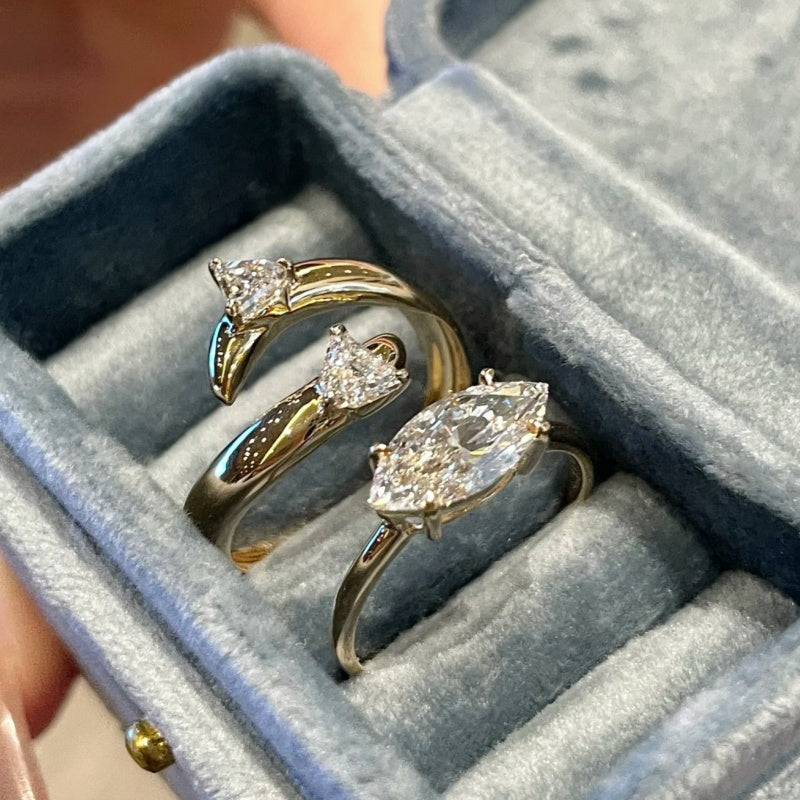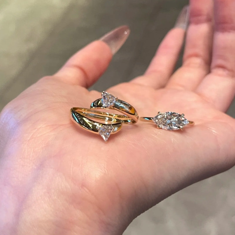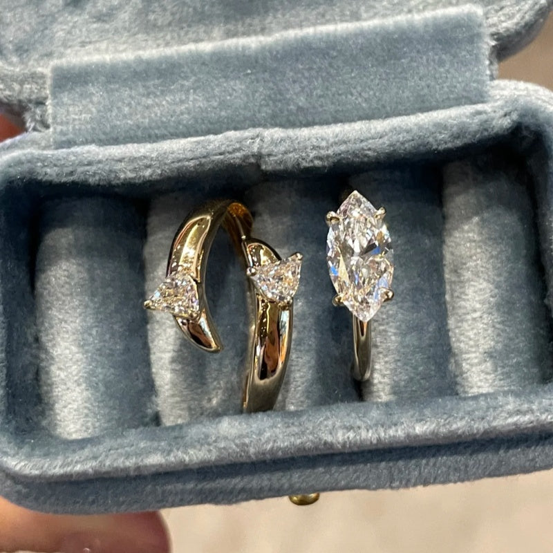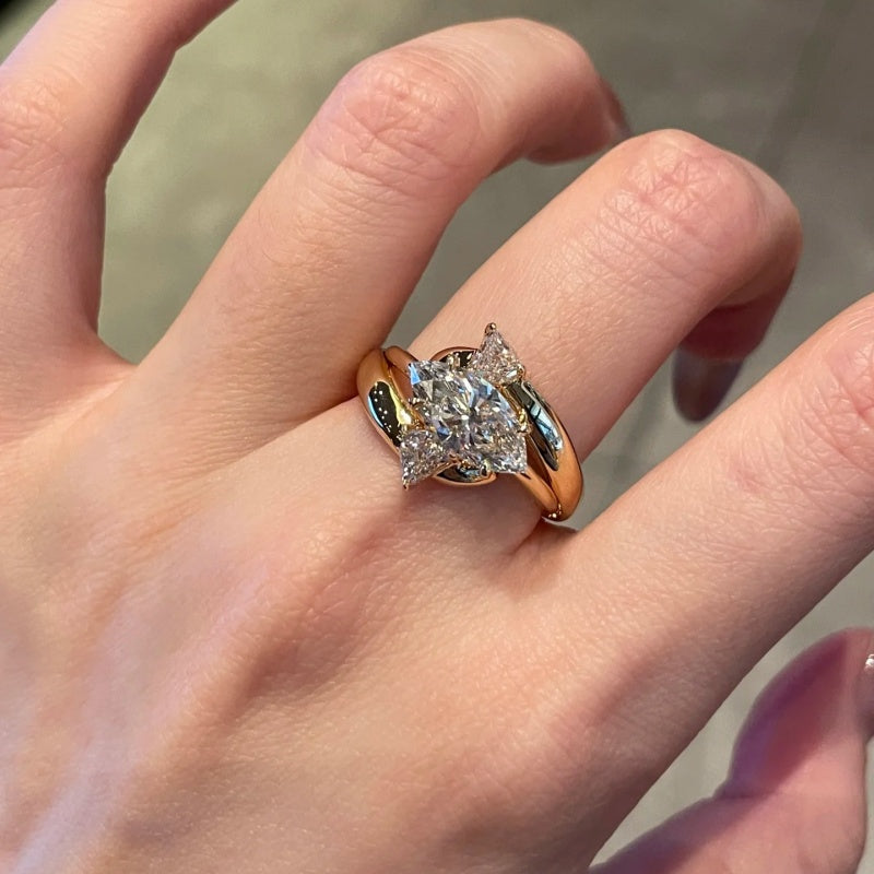 Triangular Side Stones: The unique triangular diamonds on each side add a modern twist and amplify the ring’s overall brilliance.