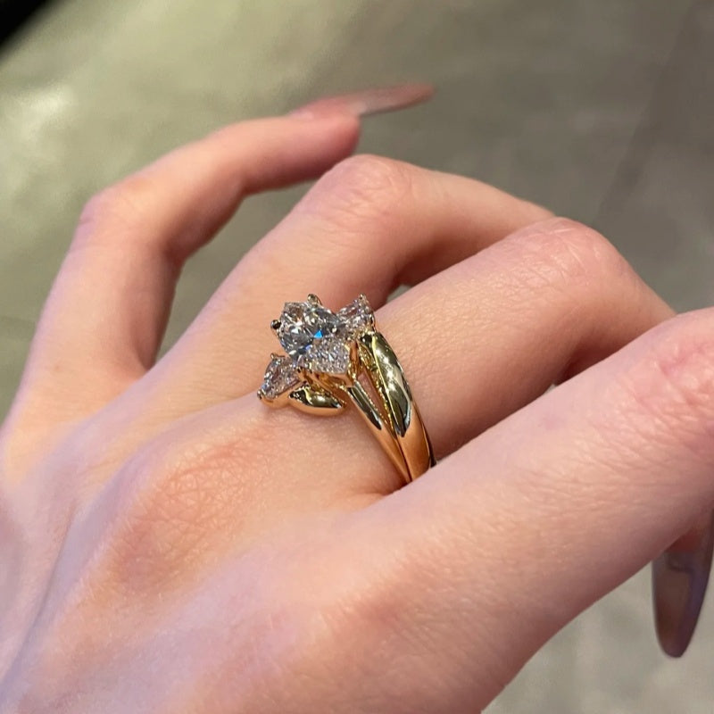 Jzora handmade elegant & brilliant marquise cut 2pcs sterling silver ring set