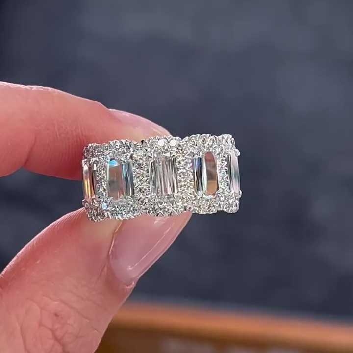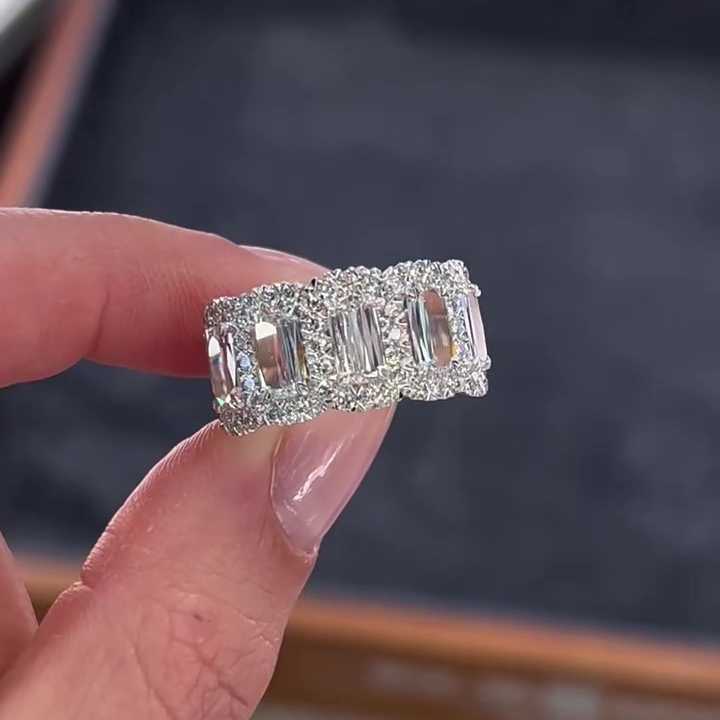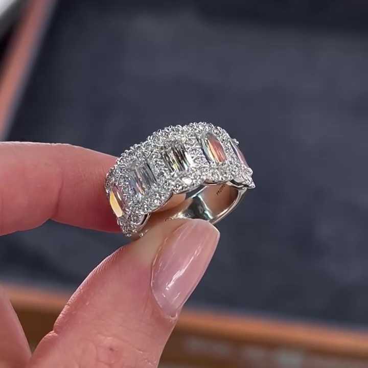 Jzora handmade emerald cut halo dazzling sterling silver ring