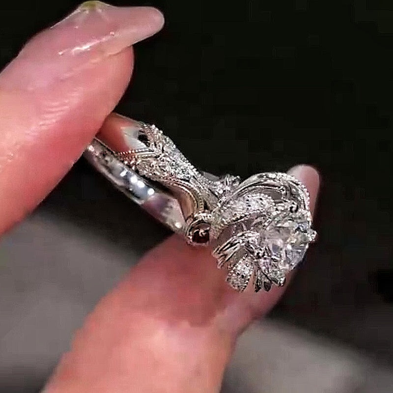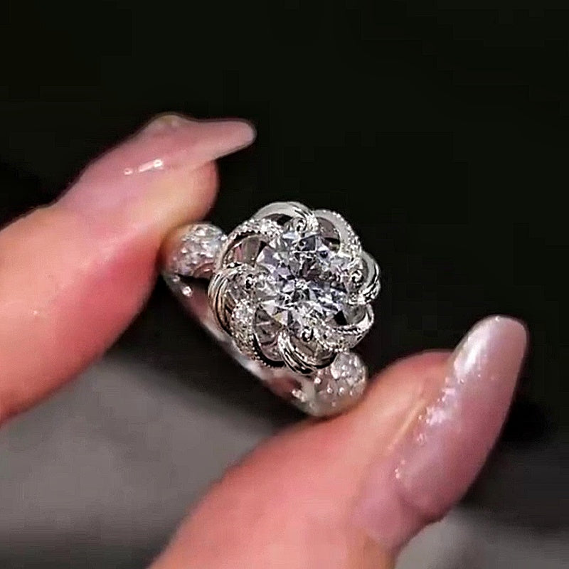 Jzora handmade eternal blossom vintage rose halo moissanite sterling silver ring