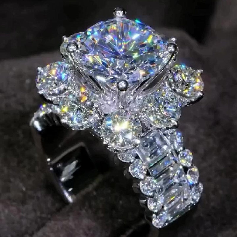 Jzora handmade exquisite round brilliant gemstone cluster halo sparkle sterling silver cocktail ring