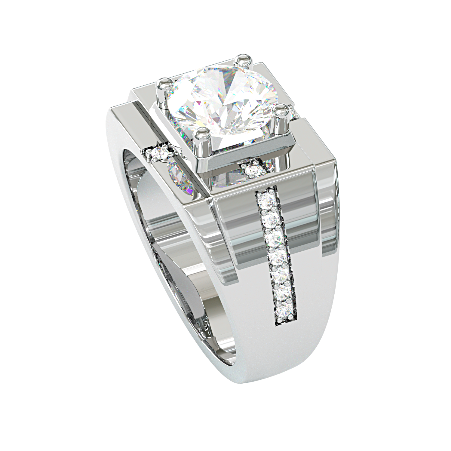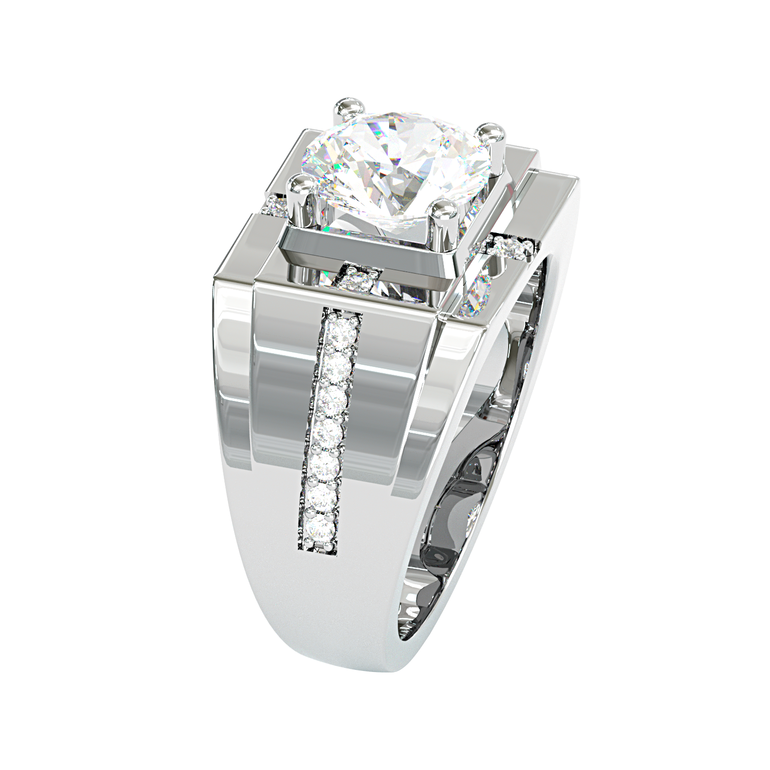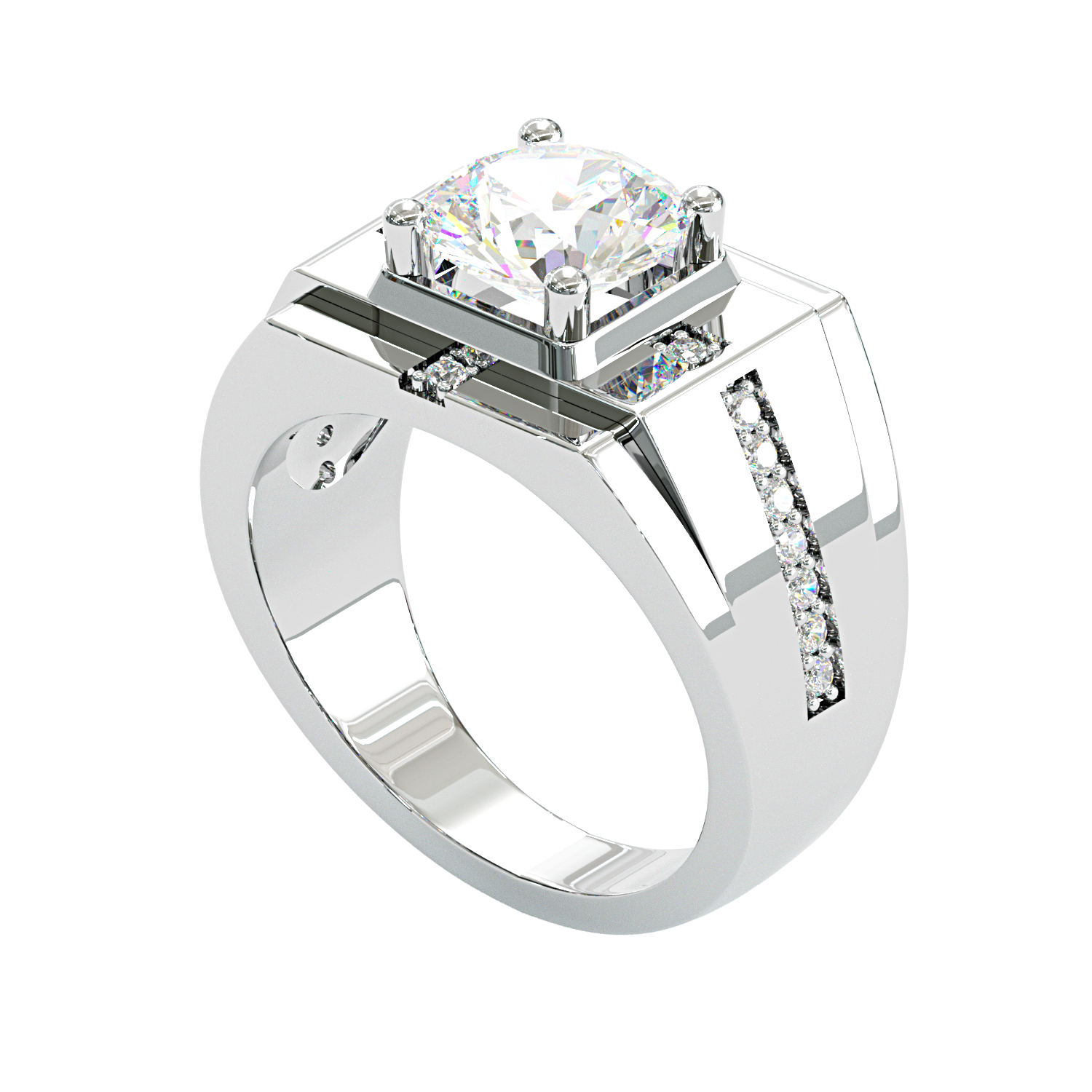 Jzora handmade geometric round cut bold brilliance men's ring