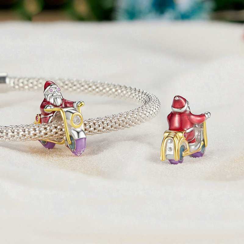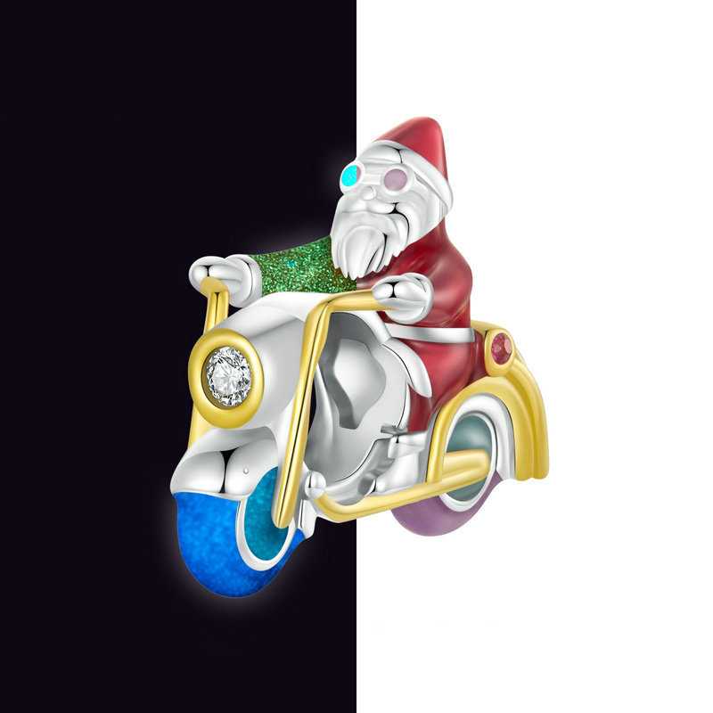 Jzora Handmade Glow In The Dark Santa Biker Sterling Silver Charms