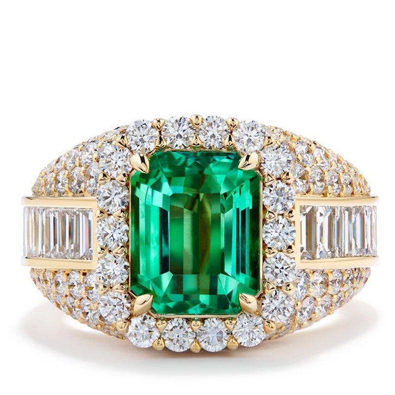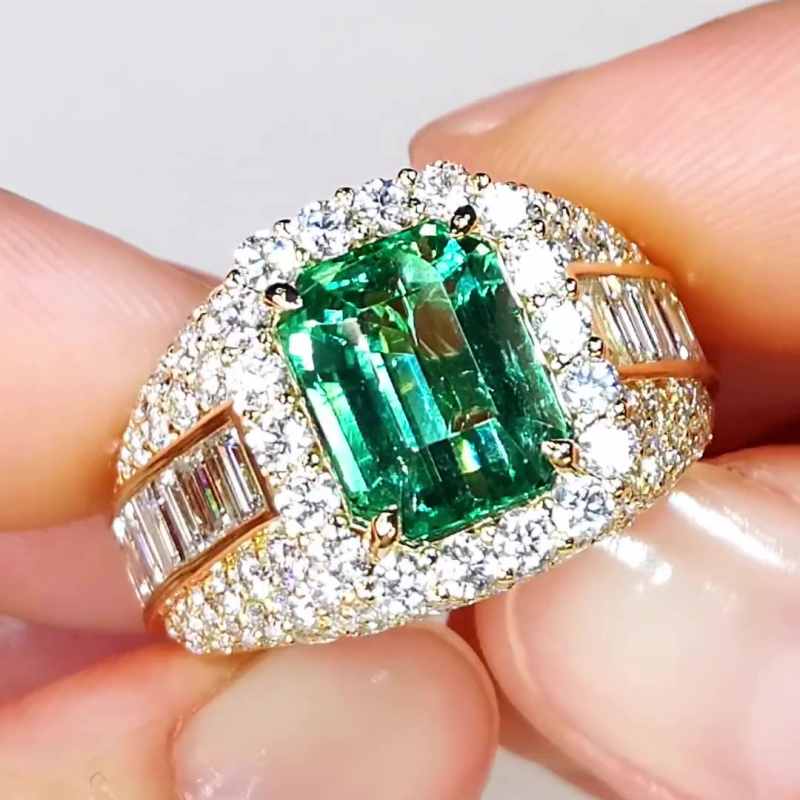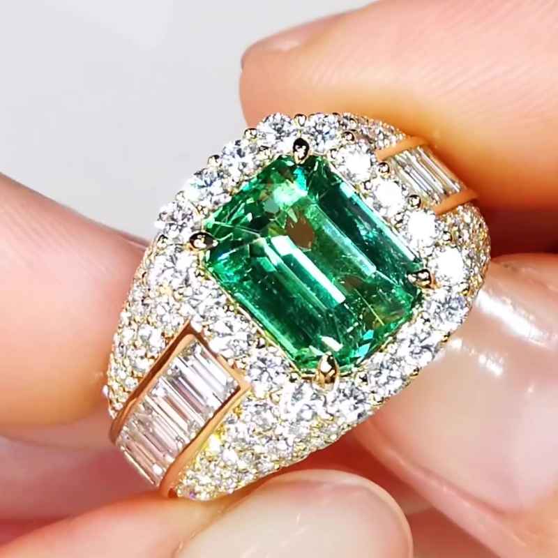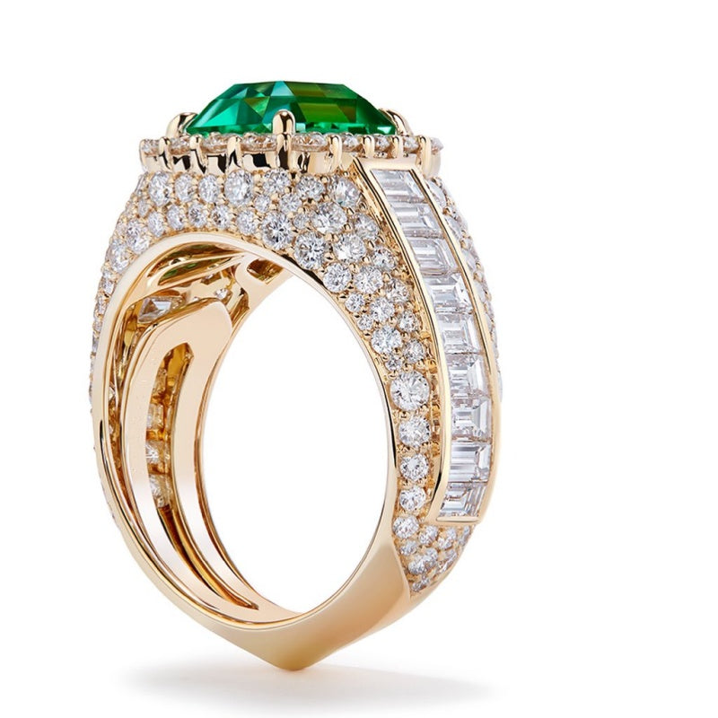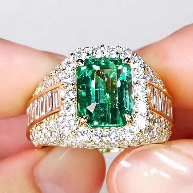 Jzora handmade gold 4 ct emerald sterling silver engagement ring