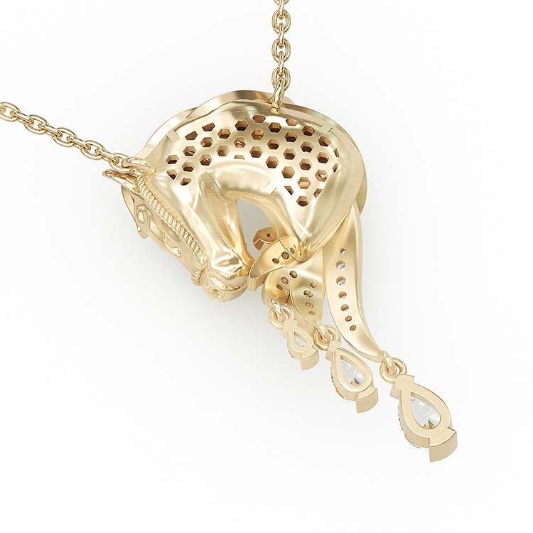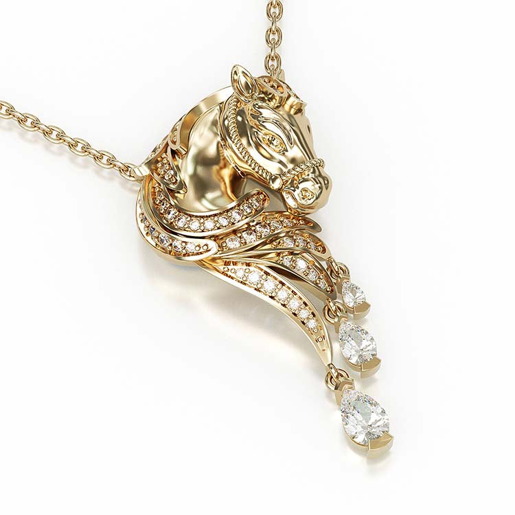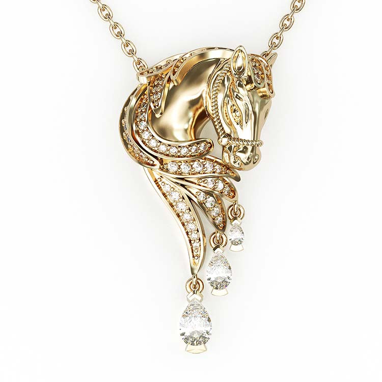 Jzora Handmade Gold Classic Horse Sterling Silver Diamond Necklace
