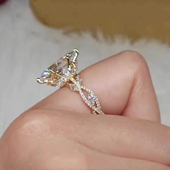 Jzora handmade gold-color 4ct marquise cut Luxury sterling silver ring