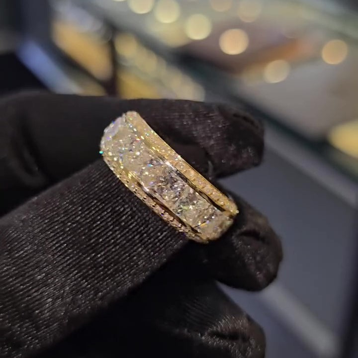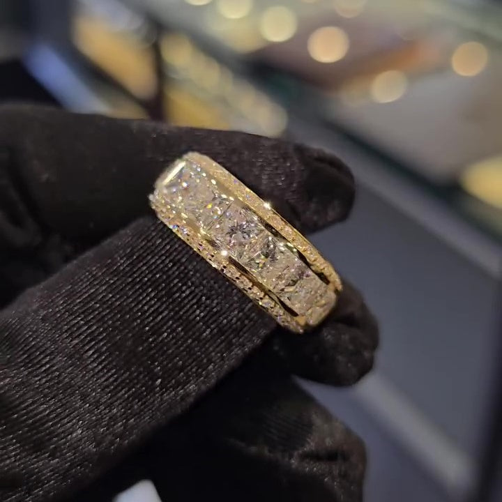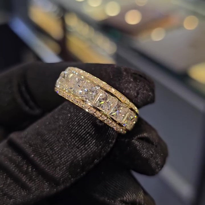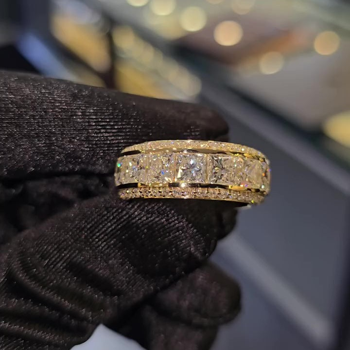 Jzora handmade gold-color princess cut brilliant sterling silver men's ring