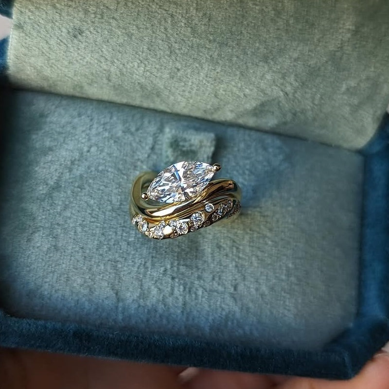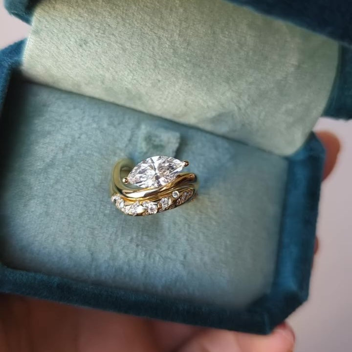 Jzora handmade gold marquise cut 2pcs sterling silver ring set