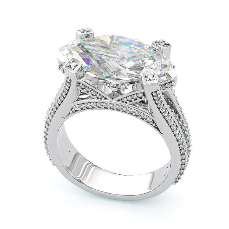 Jzora Handmade Gold Marquise Cut Vintage Sterling Silver Wedding Engagement Ring