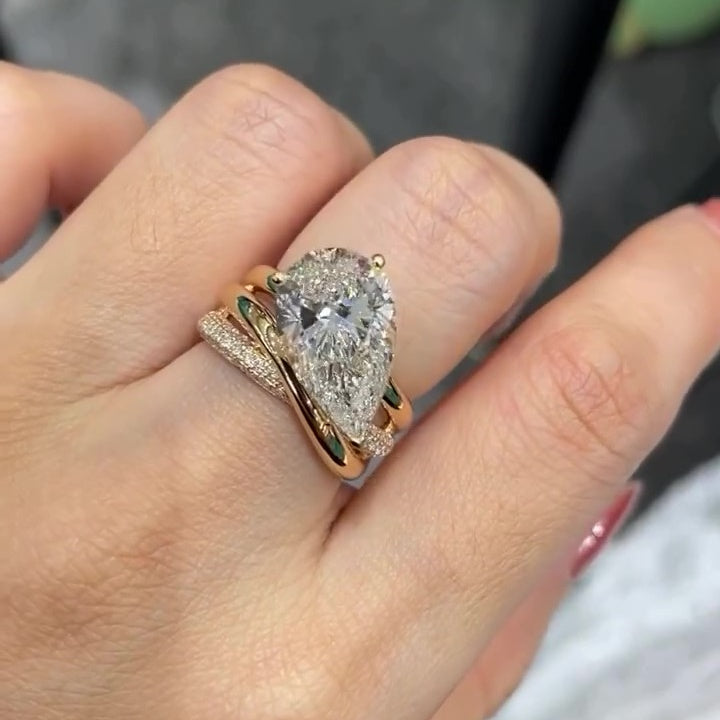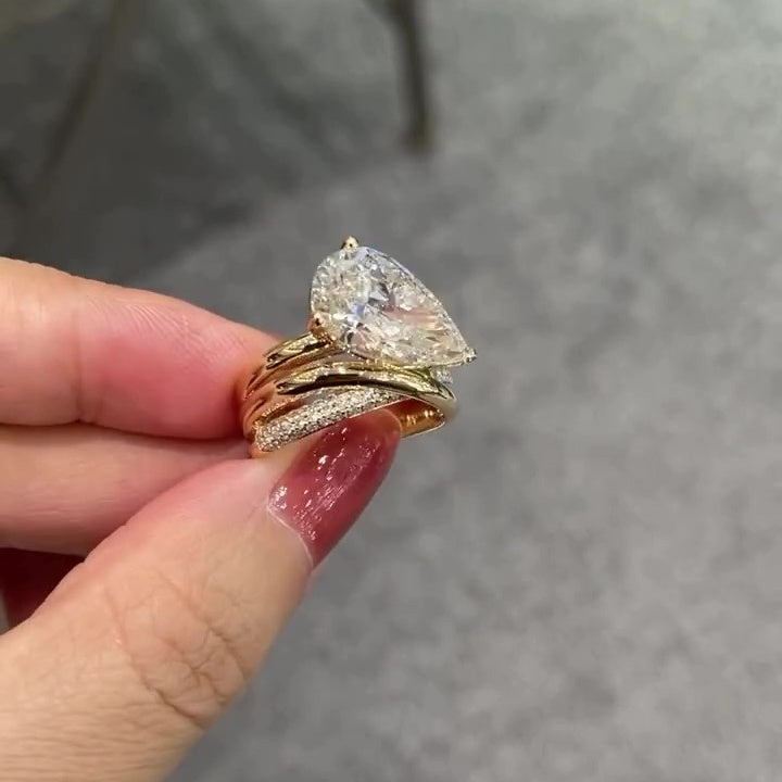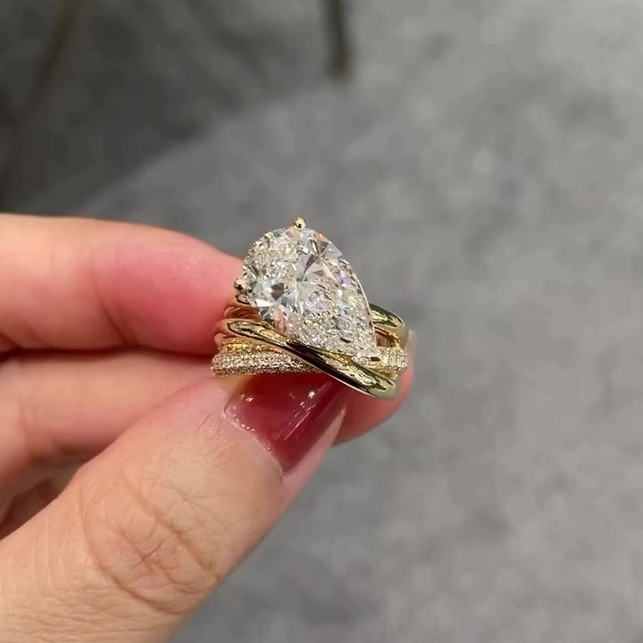 Jzora handmade 4ct gold pear cut classic sterling silver ring