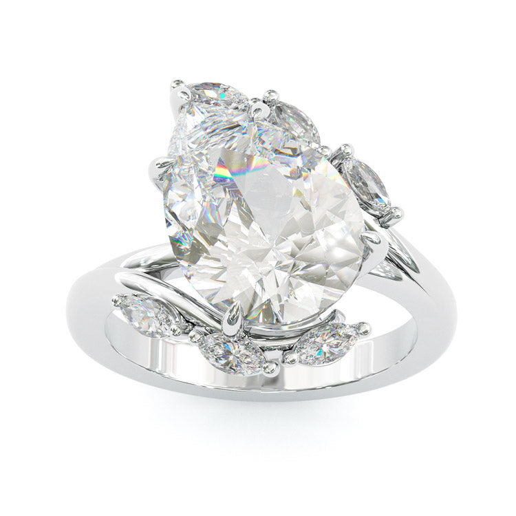 Center Stone: Pear-cut diamond with exceptional brilliance