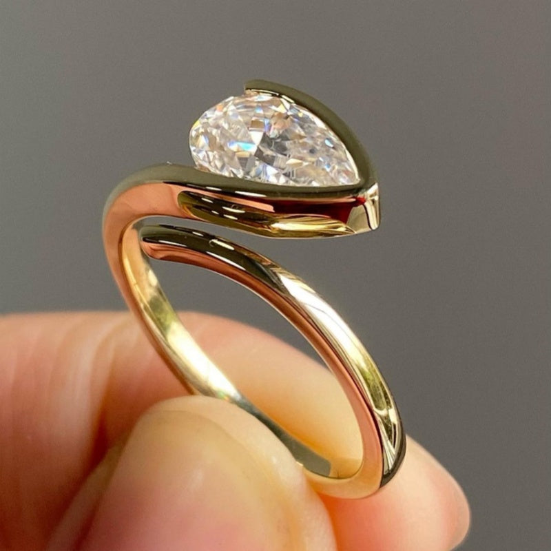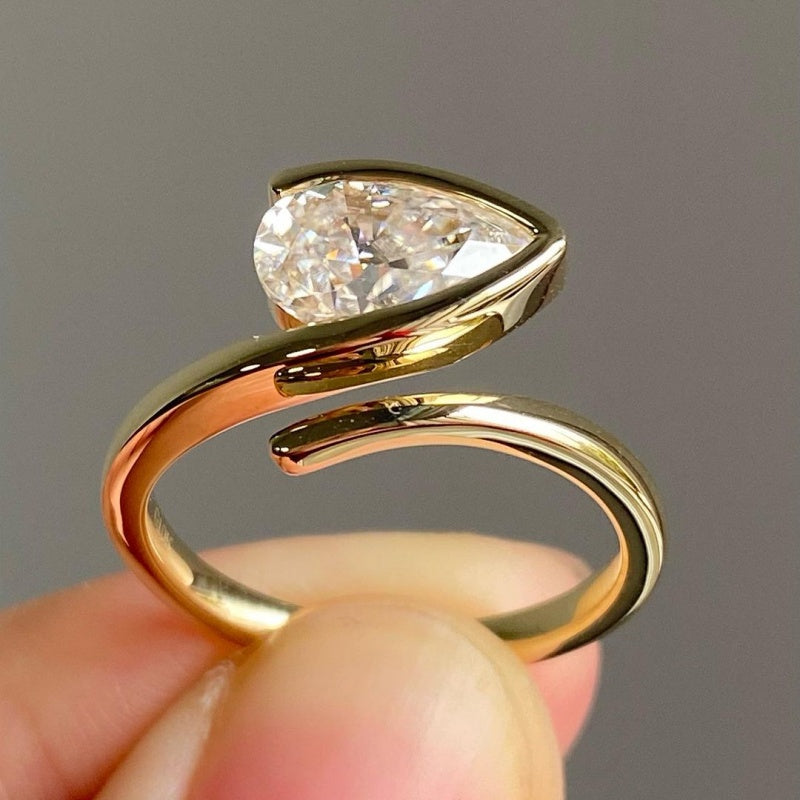 Jzora handmade gold pear cut simple sterling silver adjustable ring