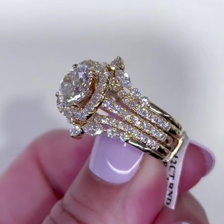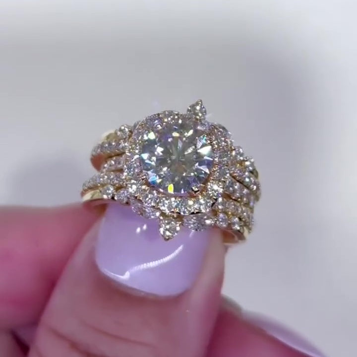 Jzora handmade 2ct gold-color round cut halo sterling silver ring set