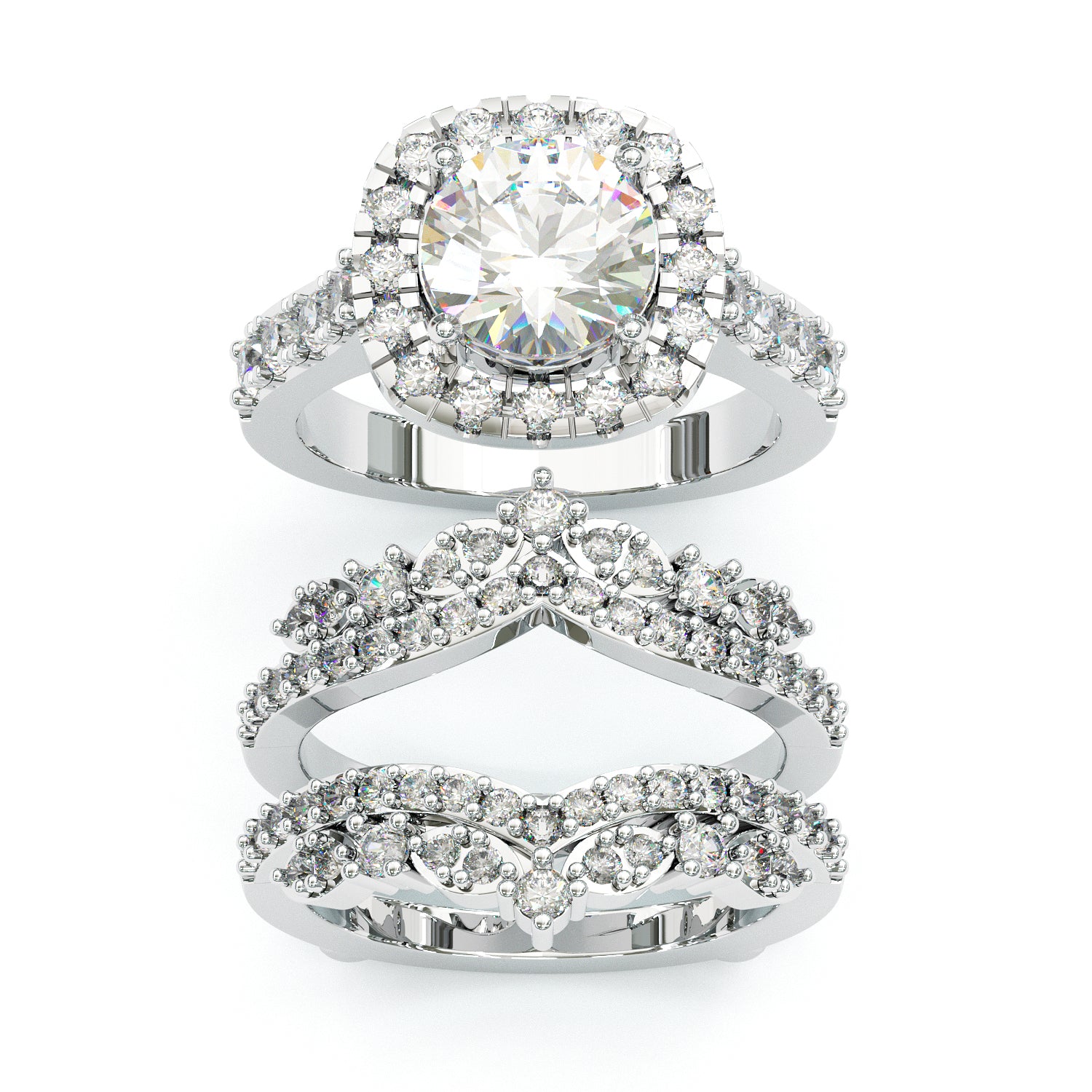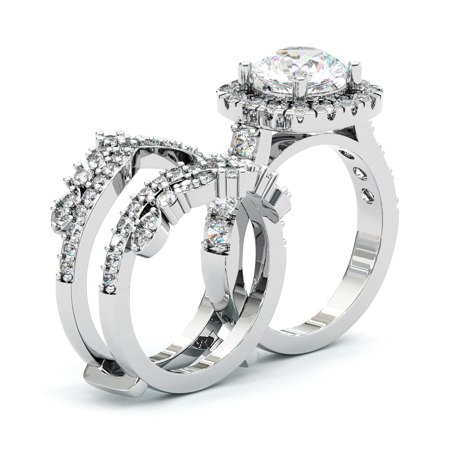 Jzora handmade 2ct round cut halo sterling silver ring set