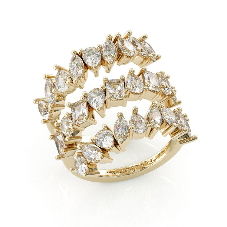 Jzora handmade gold triple row spiral wrap diamond sterling silver ring