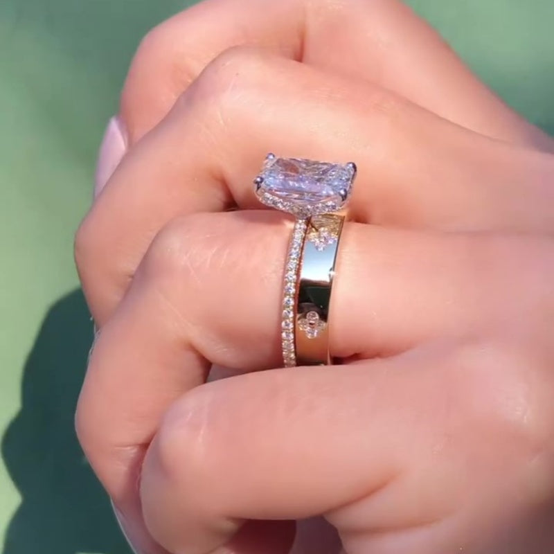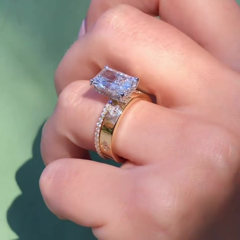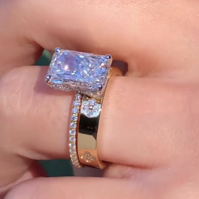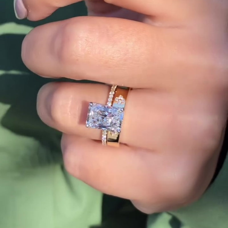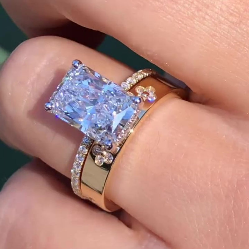 Jzora handmade golden radiant cut sterling silver wedding ring set